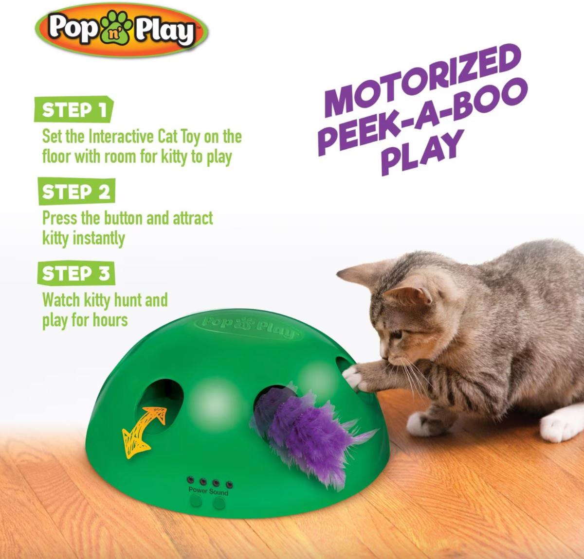 Pets Know Best Pop N Play Interactive Cat Toy – Green Motion Whack-A-Mole Style Fun
