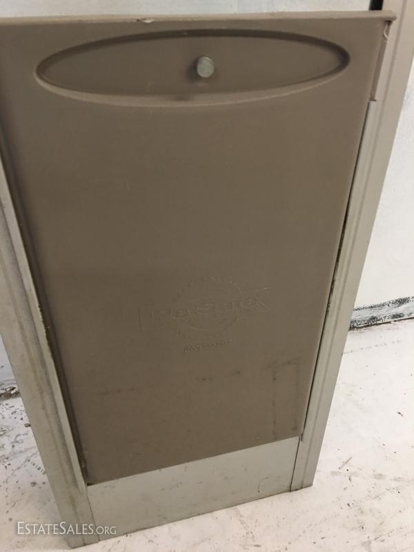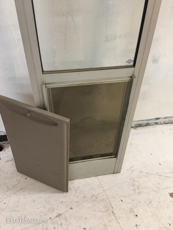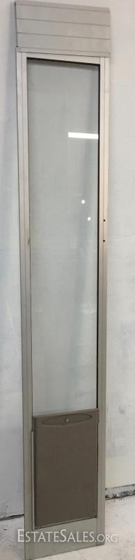 Petsafe pet door fits in sliding glass doorway, I believe this is the medium to large size. 14" wide, will fit heights between 78-82 inches. Pet door is 10" wide and 14" tall. In good used condition.