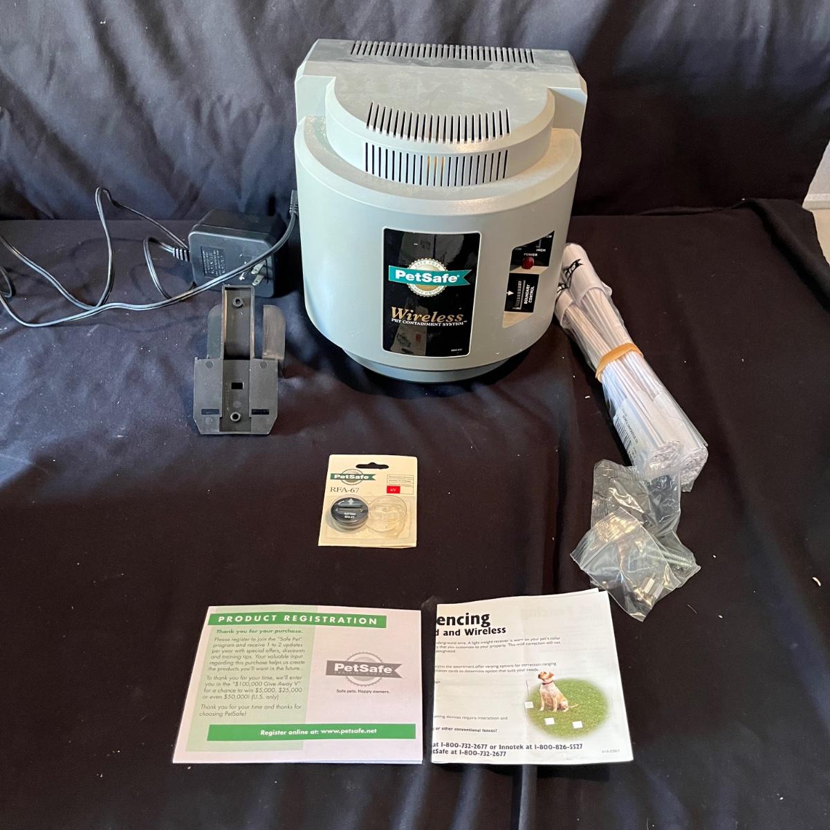 Lot includes a Wireless Petsafe Containment system model# S402-855. Only includes control unit. Unit powered on when tested.