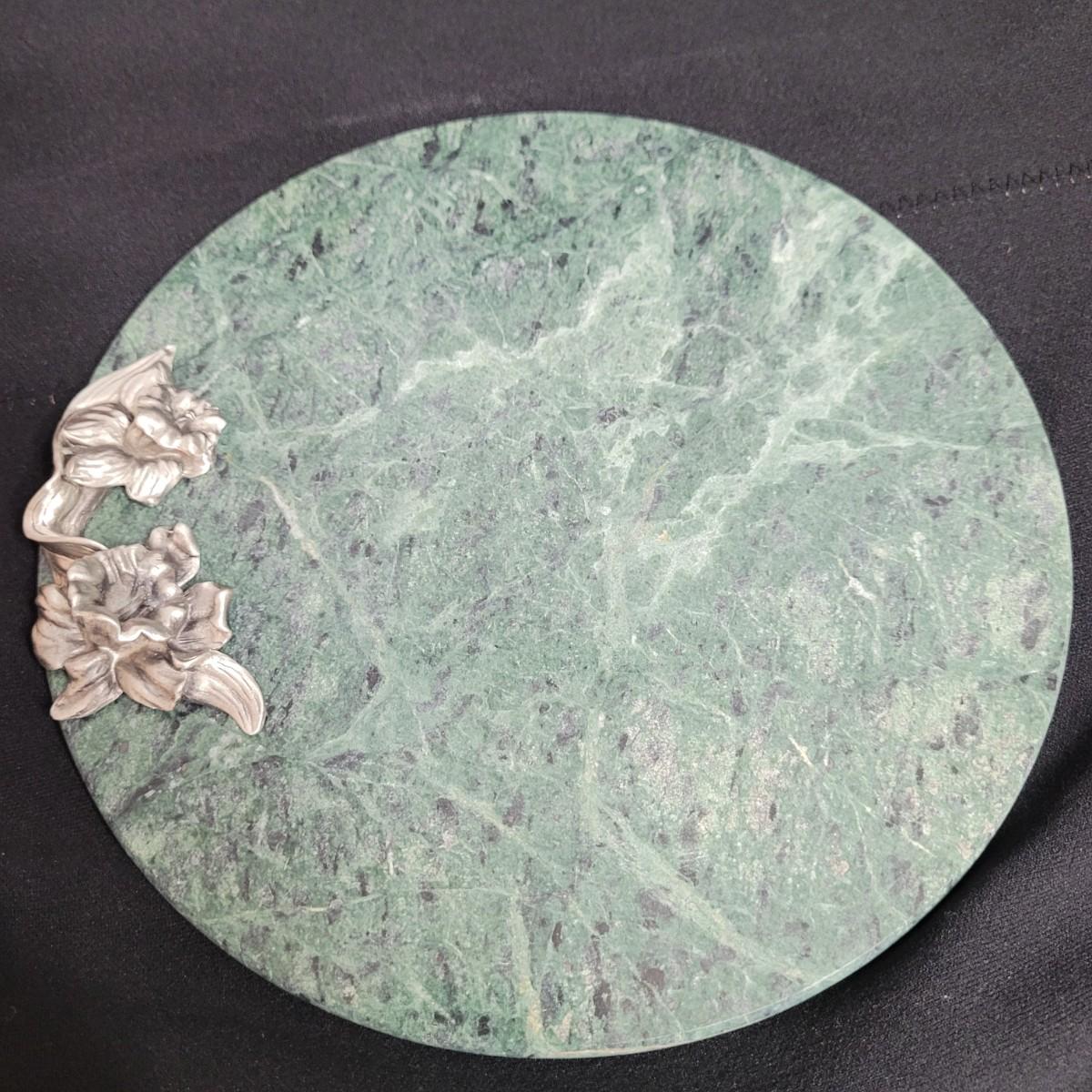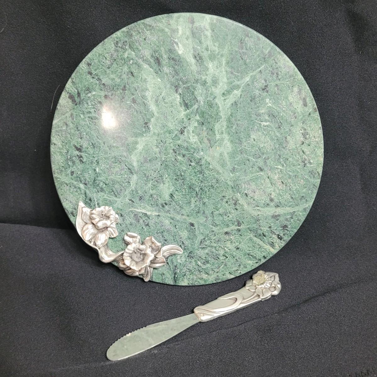 Pewter and Marble Cheese Tray and Crystal Glass (K-EL)
