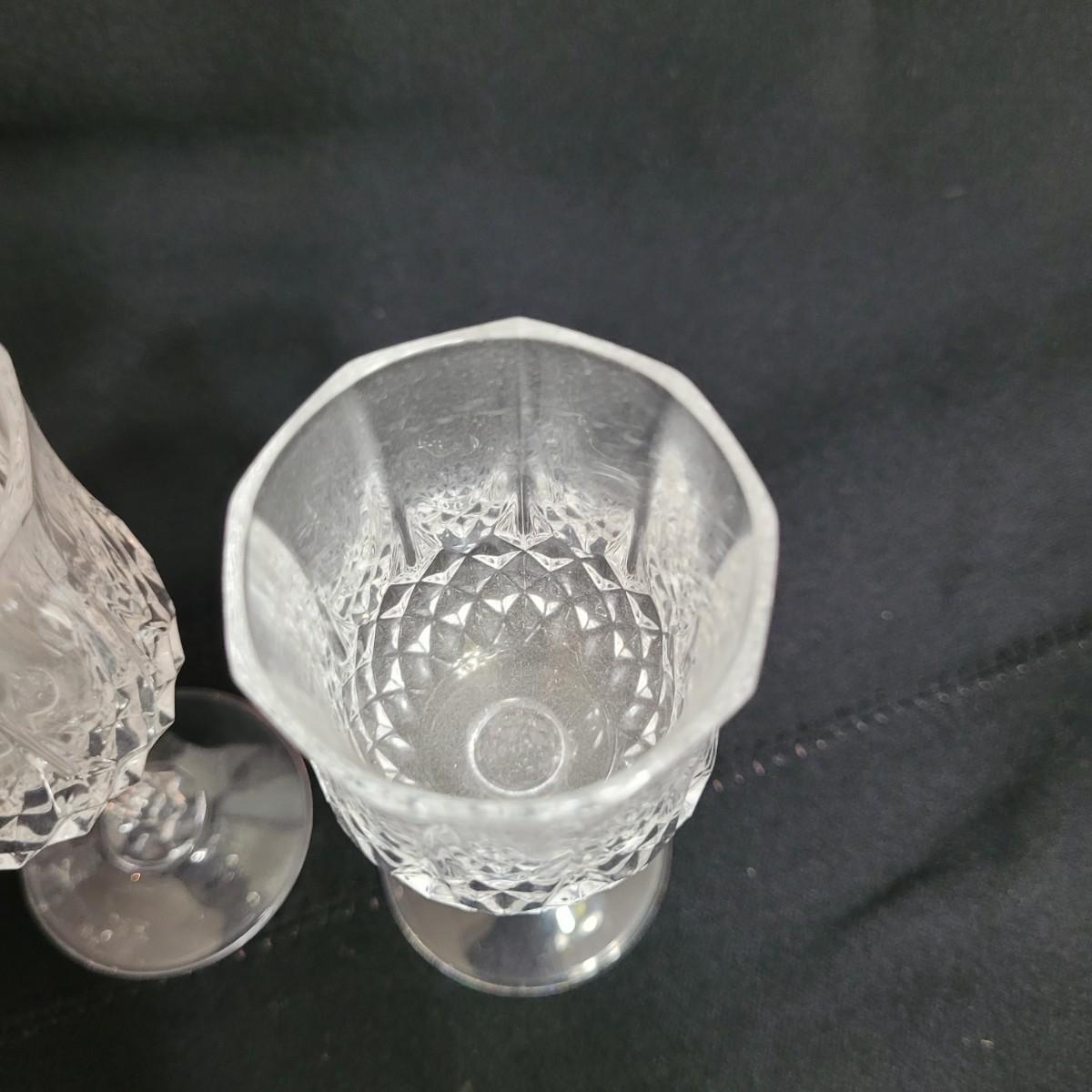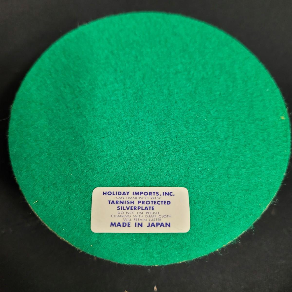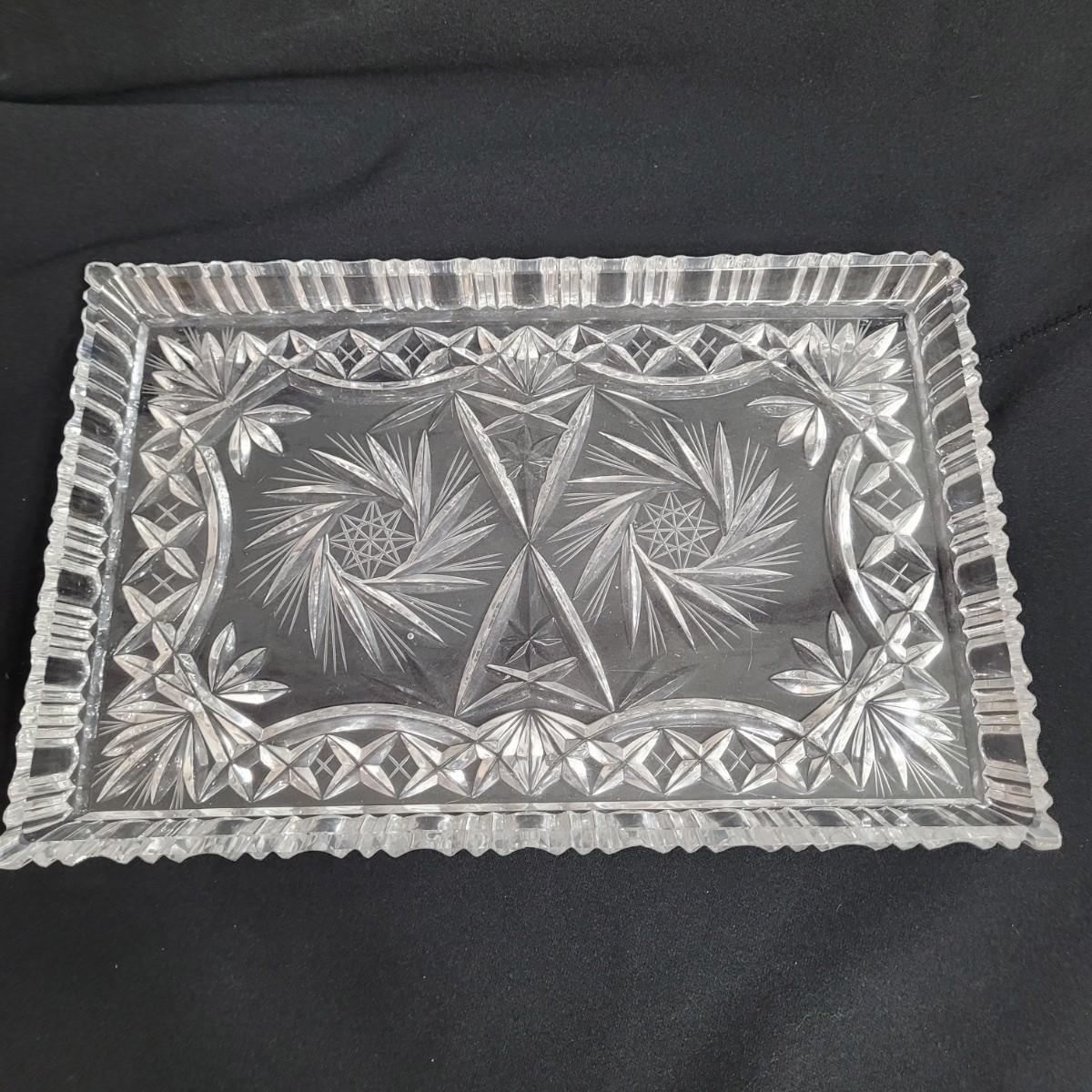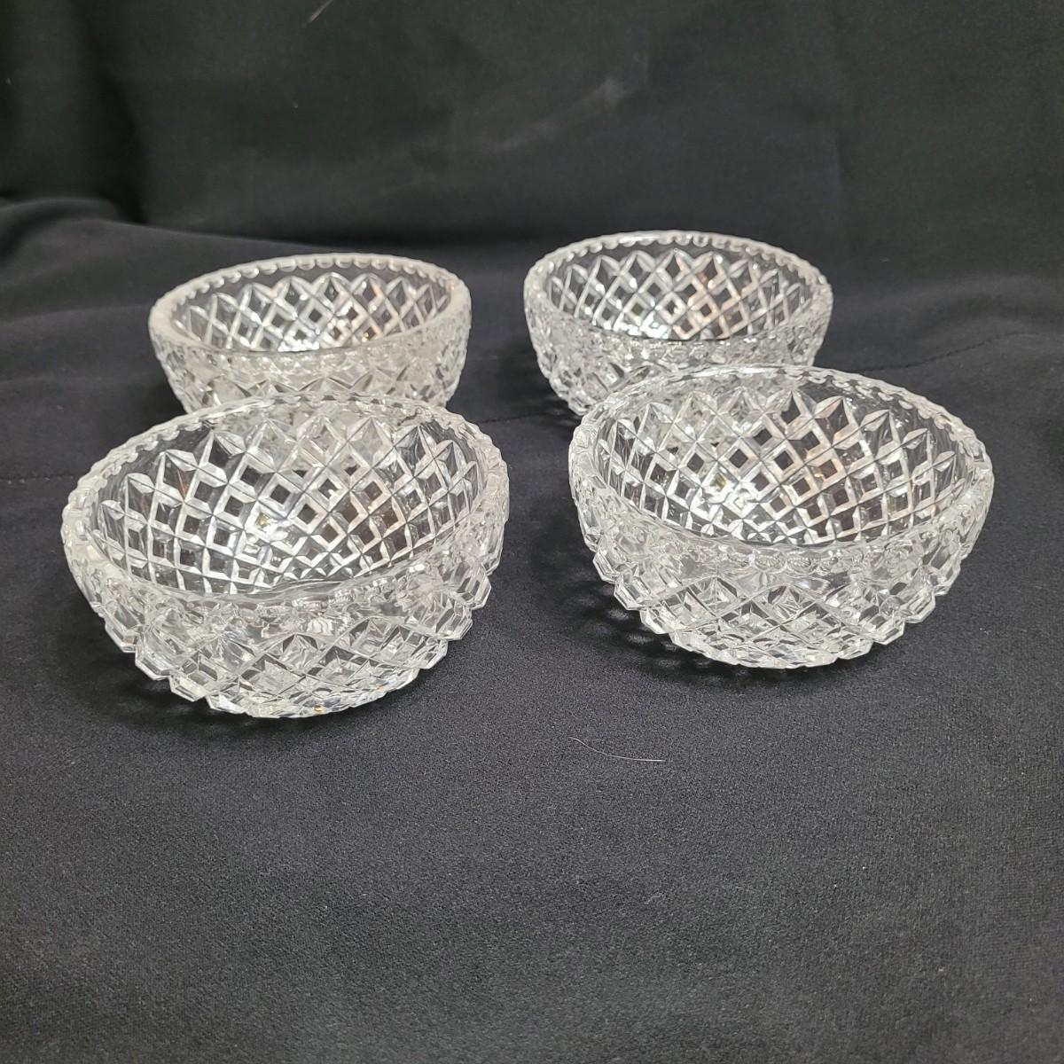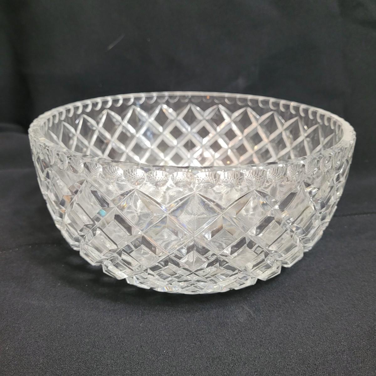 This lot includes one Seagull Pewter brand cheese tray made from marble and pewter, ten piece crystal glass serving set, and a silver plate bottle holder. The cheese board measures 8" x 8" x 1"H and includes a pewter knife and its original packaging. The crystal glass set includes a large bowl with an 8" diameter, four smaller bowls, four sherry glasses, and a rectangular serving tray. The silver plated item appears to be a candle or coaster holder. See photos for more detail on individual items.