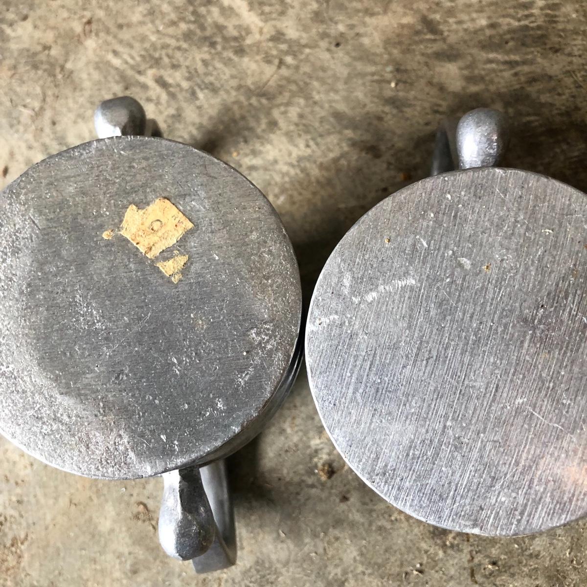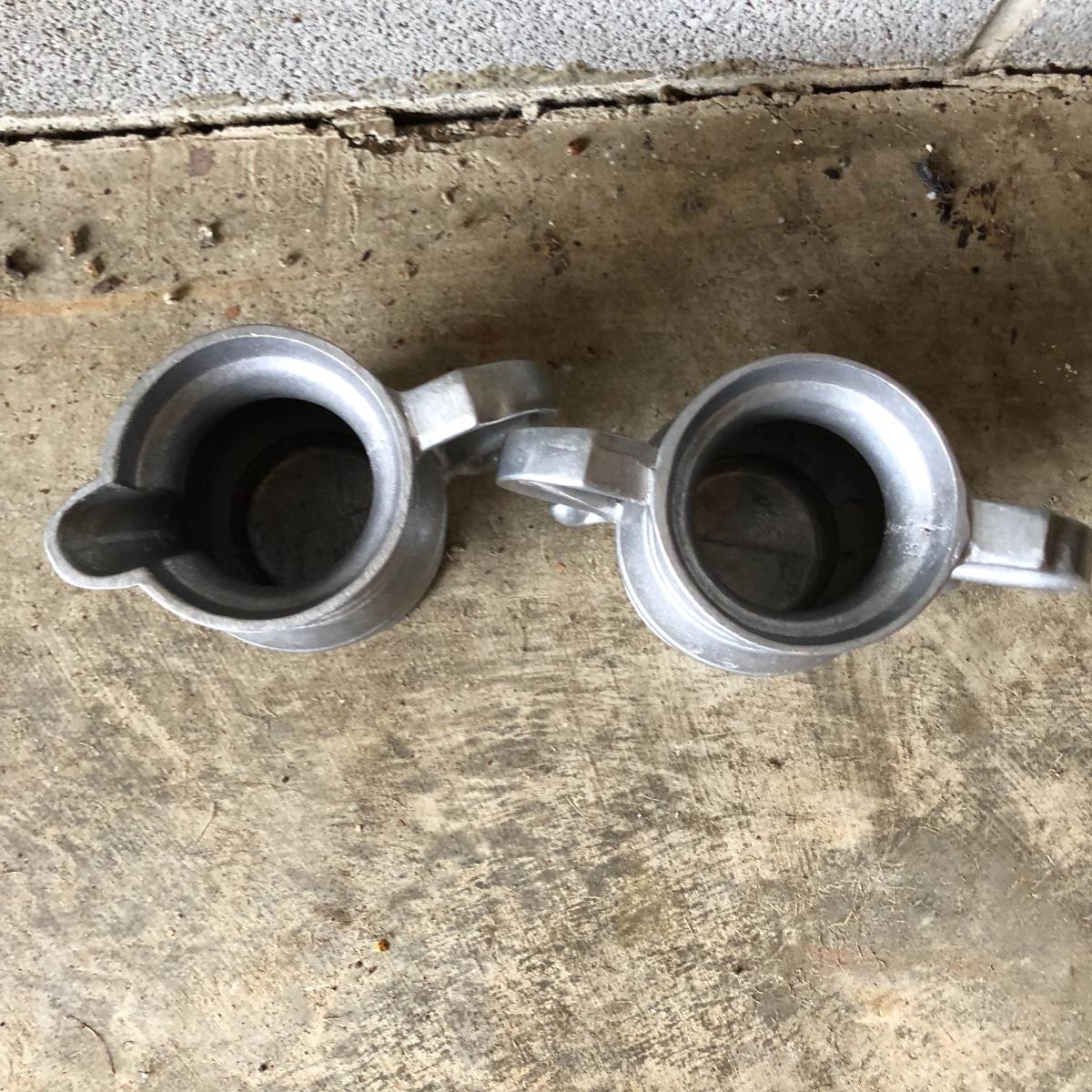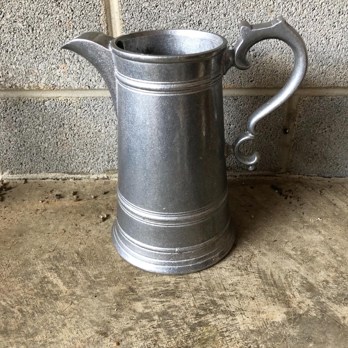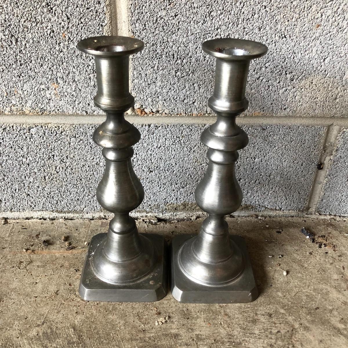 Lot includes pewter pitcher, Norwegian boat dish,,pair of candlesticks, cream and sugar dishes and two small bowls marked KDM Holland that are heavier than they look.