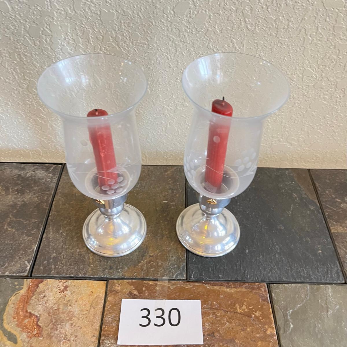 Pewter Candlesticks w/ Glass shades