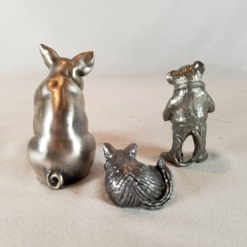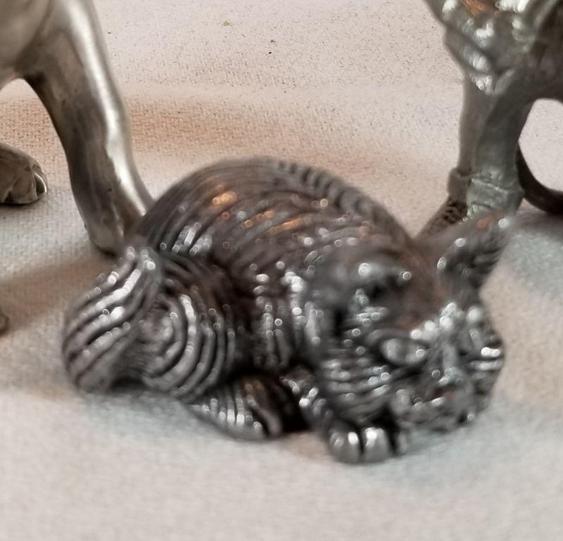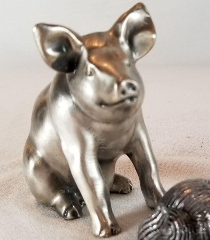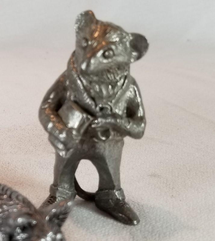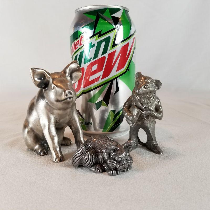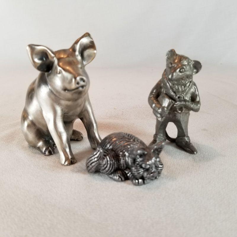 All three figures are of solid pewter. The pig is especially nice and stands 3-inches tall. This offering includes a cute Mouse with a book and a snoozing little kitty cat.
