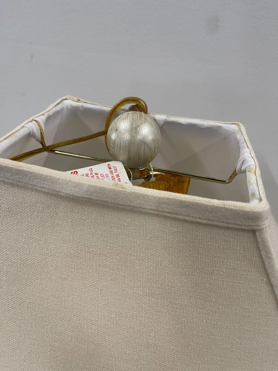 Lamp in excellent condition, shade has some marks on it. 29" to top of shade. Shade is 21" wide