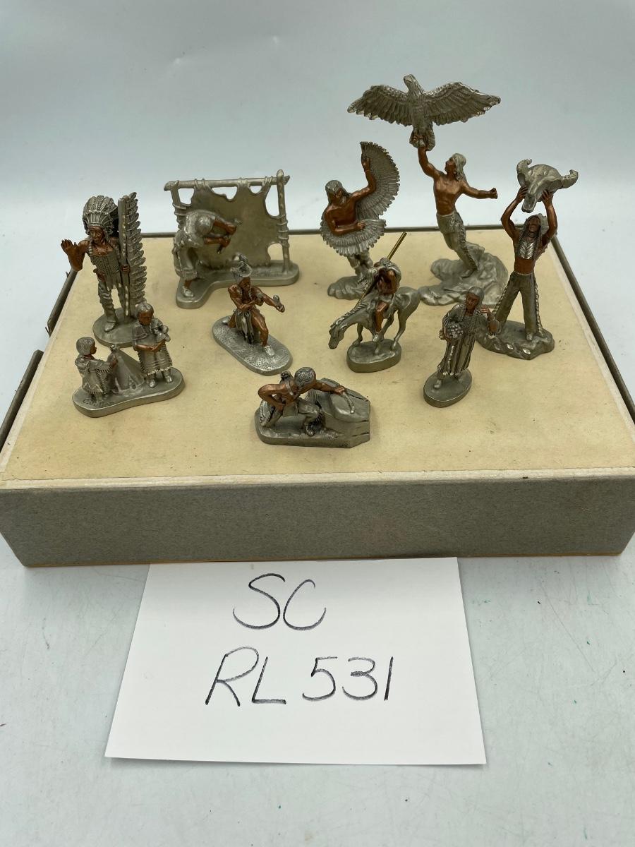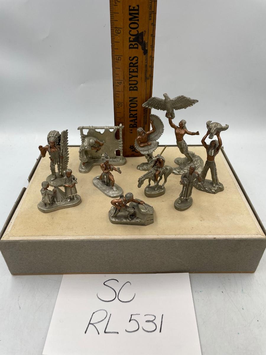 Pewter copper figurines of Native American Indians-set of 10