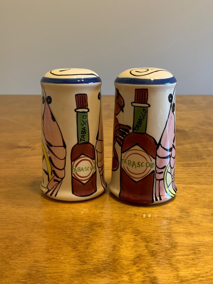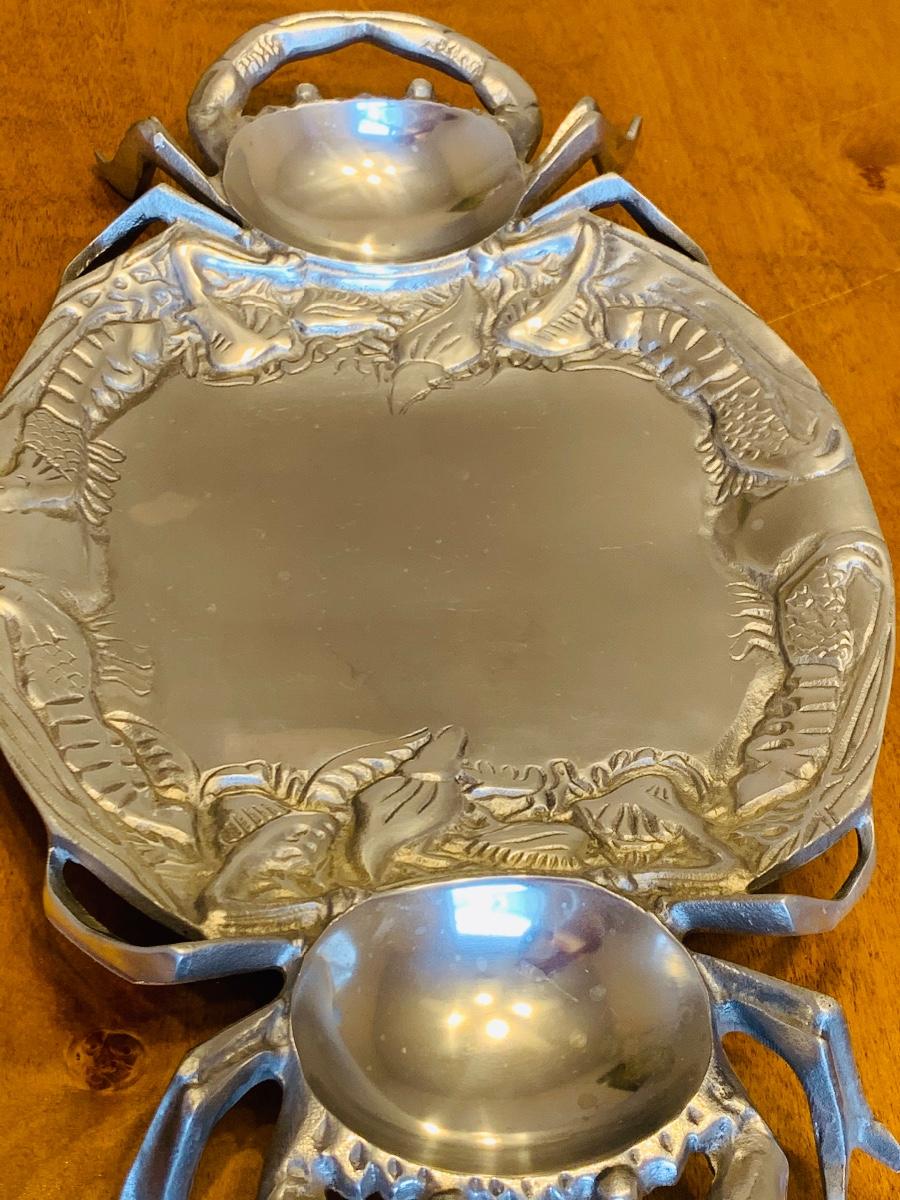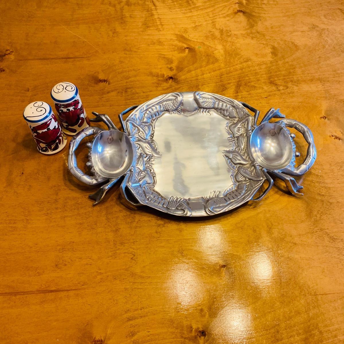 Pewter Crab Serving Platter and Set of Tabasco Salt and Pepper Shakers