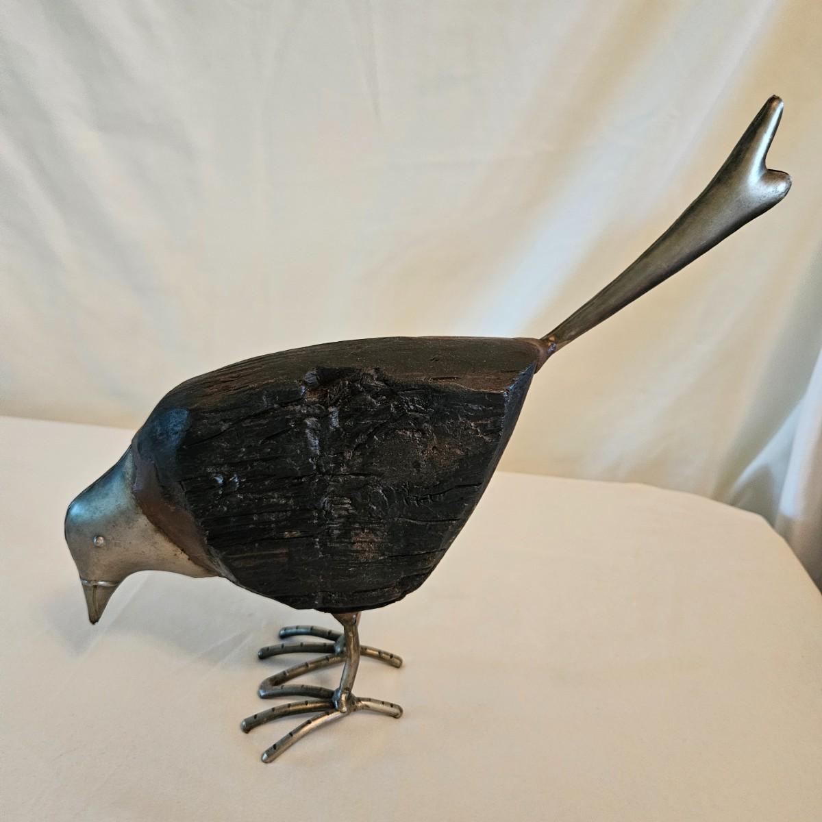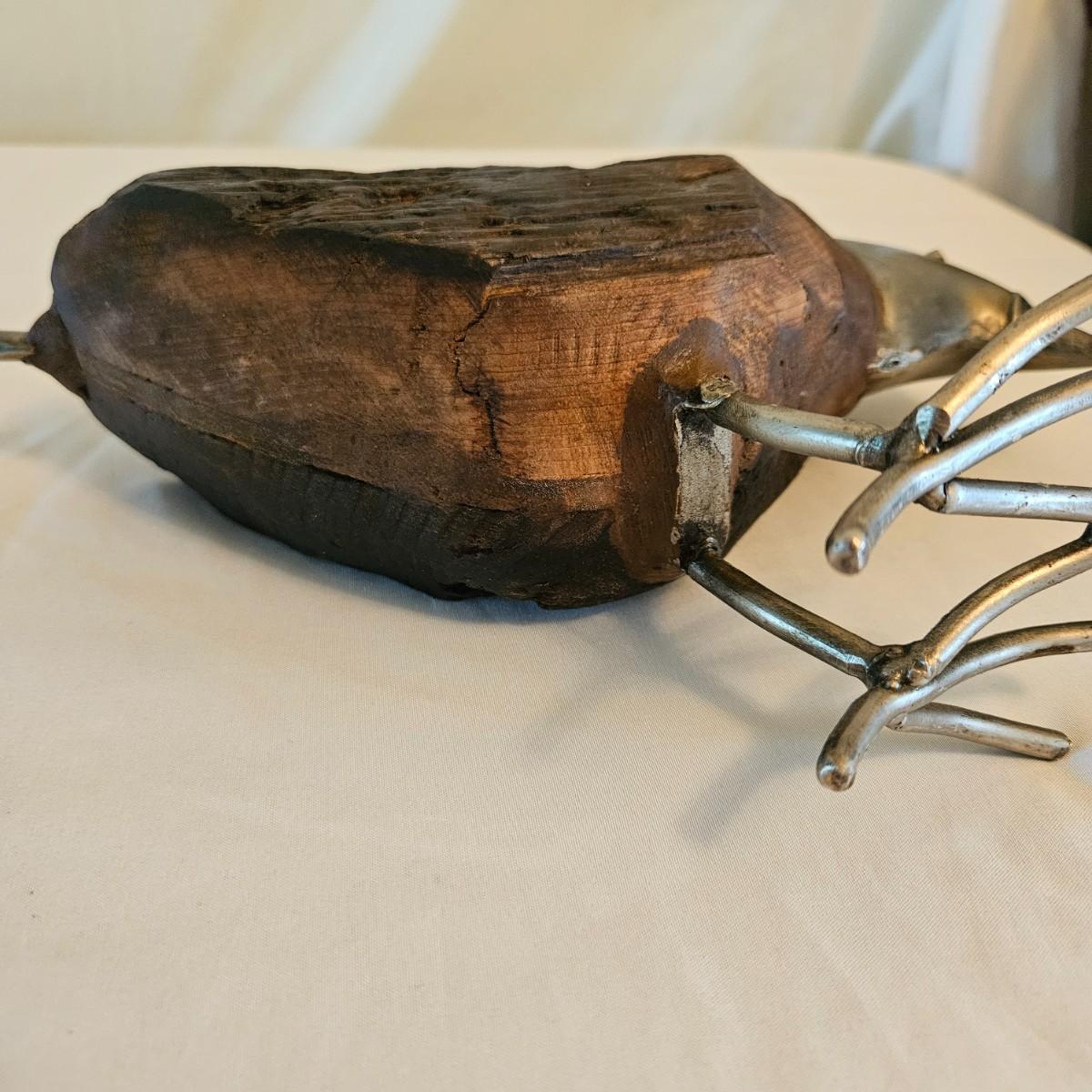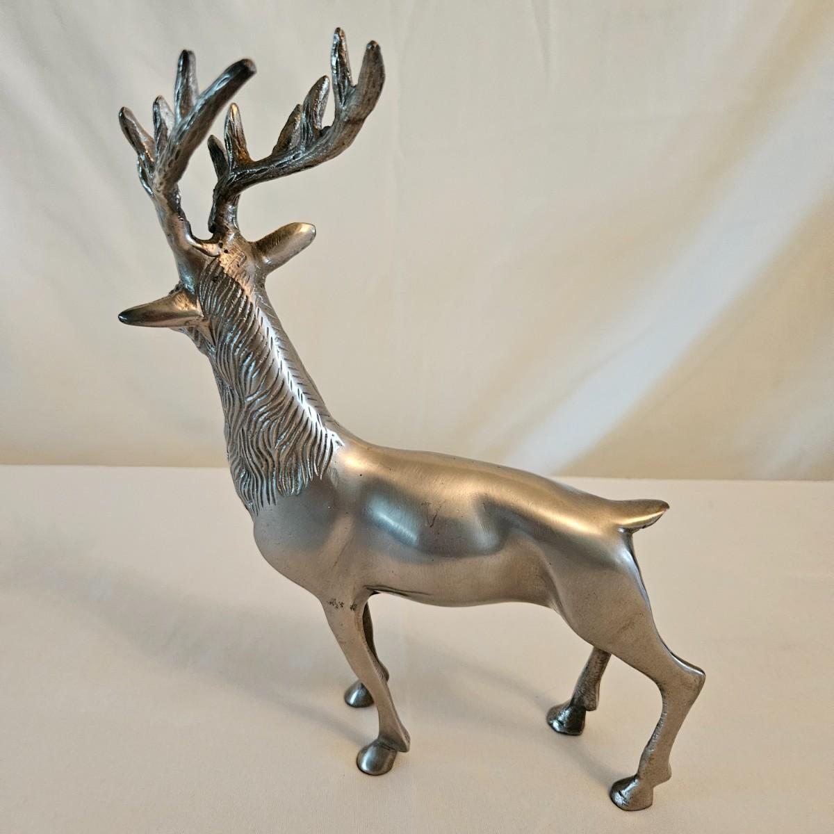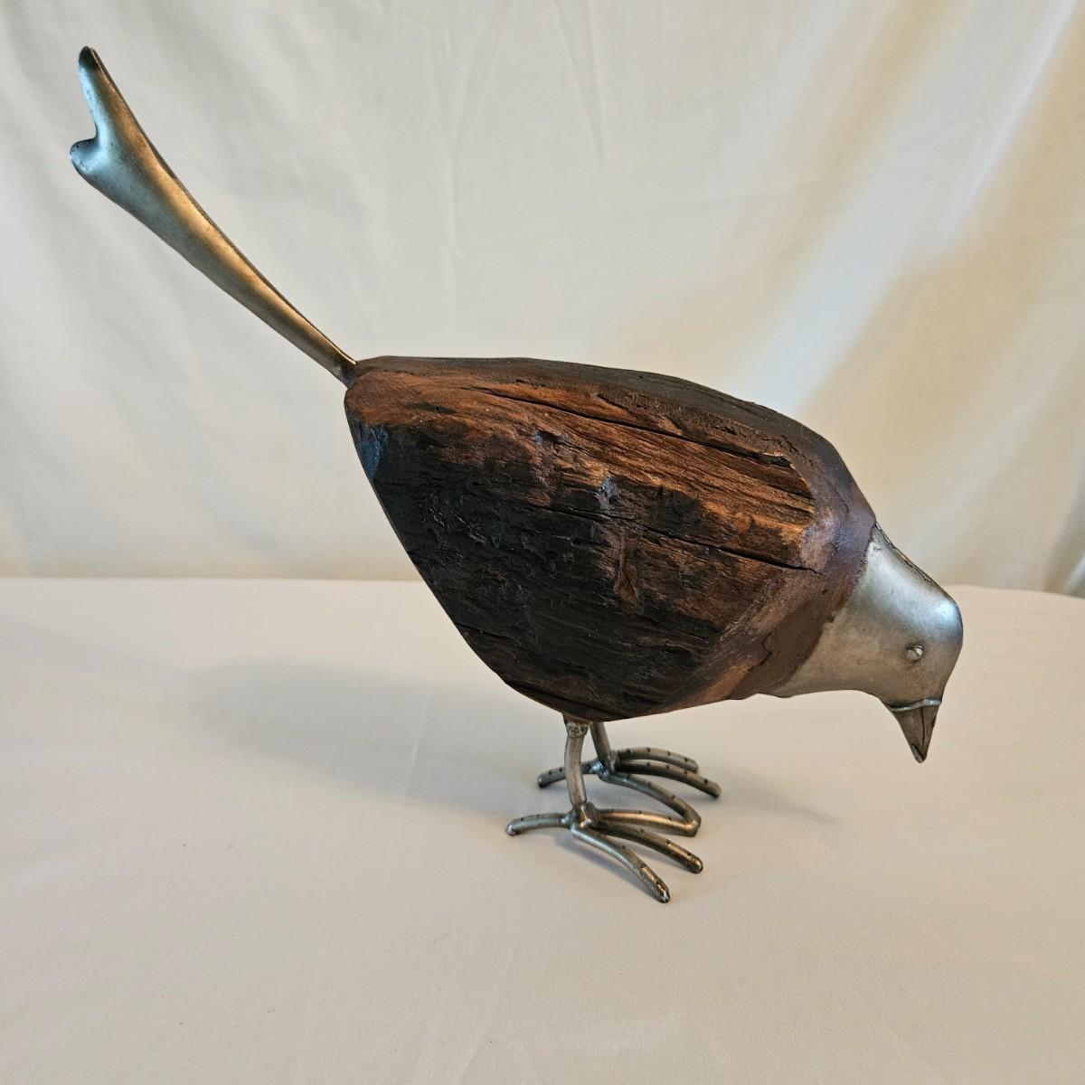 A pair animal statues that includes a deer and a bird. The deer is made if pewter and measures approximately 7" x 4" x 10"H. The bird is constructed of a rustic wood body with a metal tail, feet and head. Shipping available