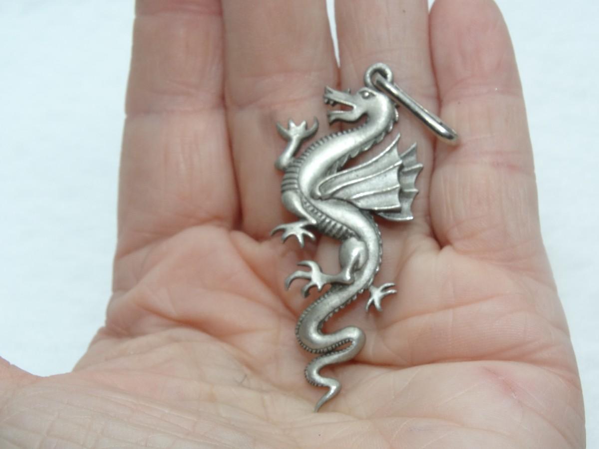 Pewter Dragon Pendant, J.J. 1986 Jonette Jewelry