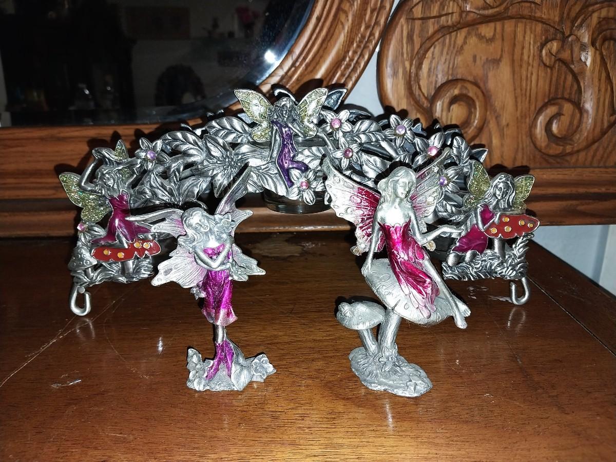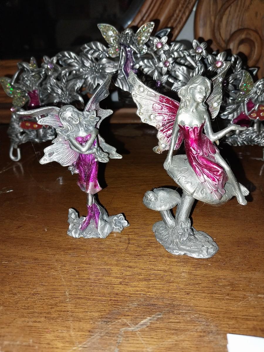 EWTER FAIRY CANDLE HOLDER AND TWO FAIRY FIGURINES