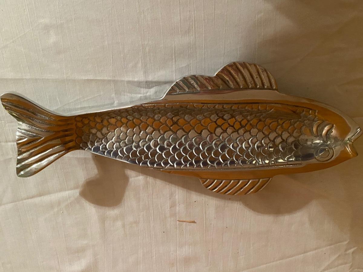 Pewter fish tray, new. For decorative use. Approx 14 x 6 x 1-1/2