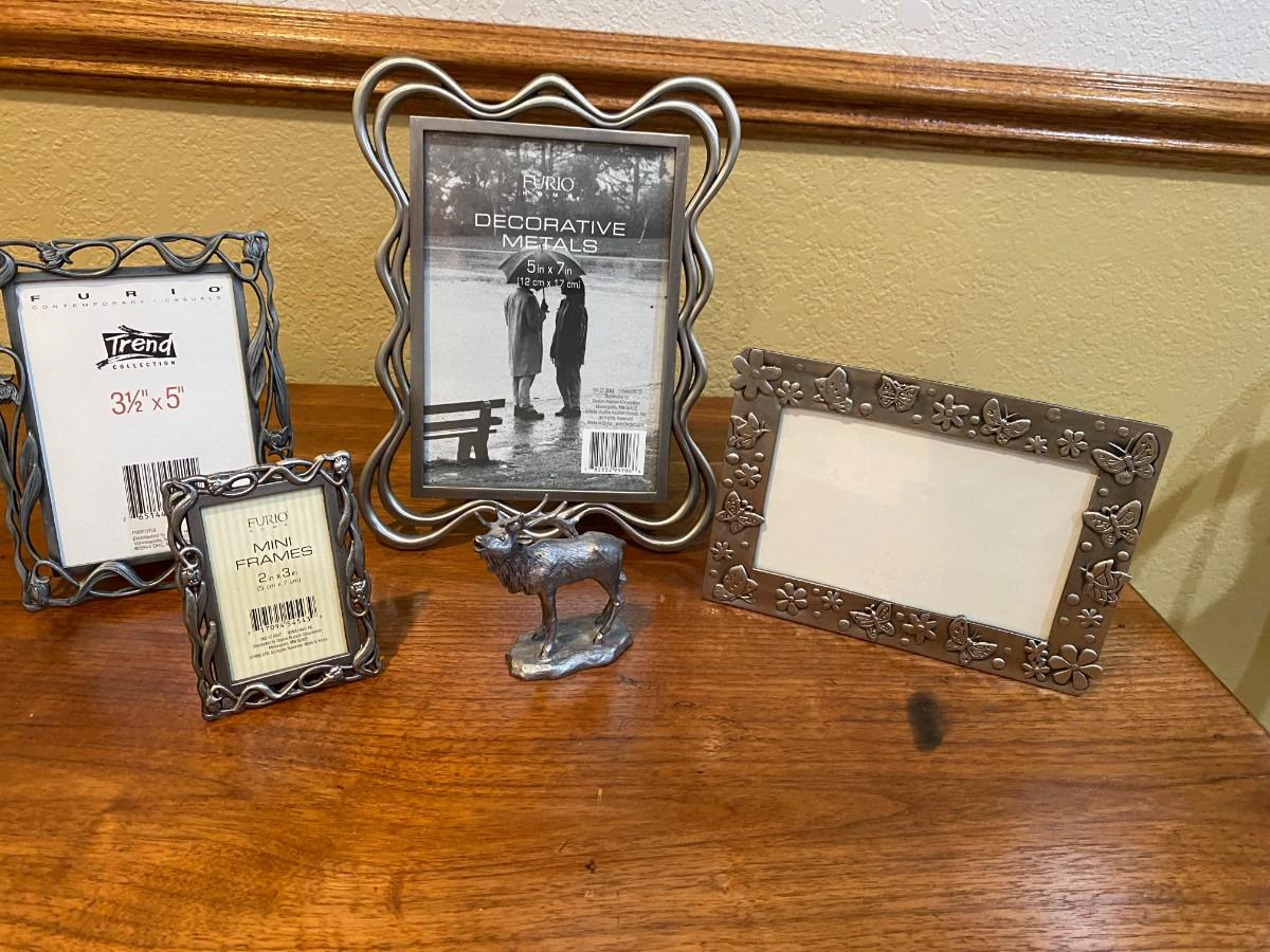 PEWTER FRAMES AND DECORATIVE ELK