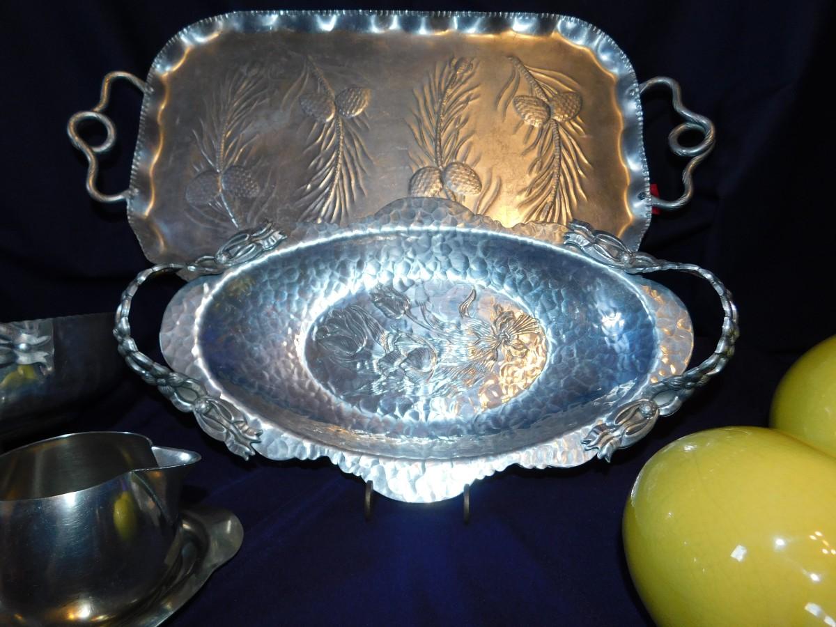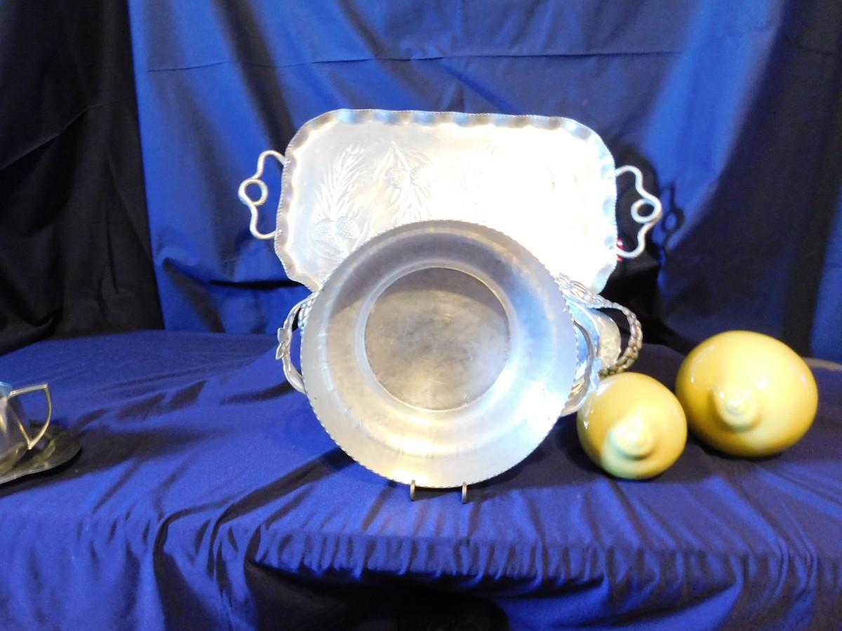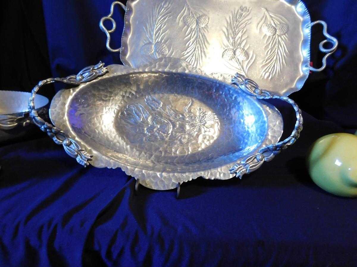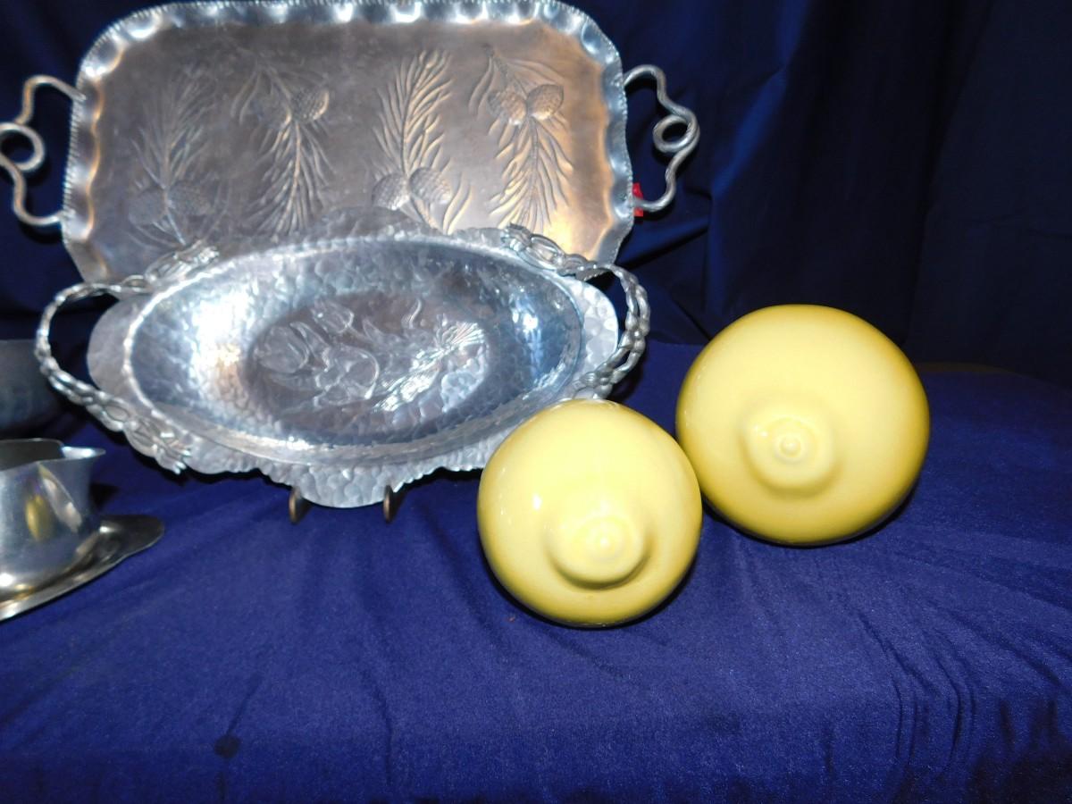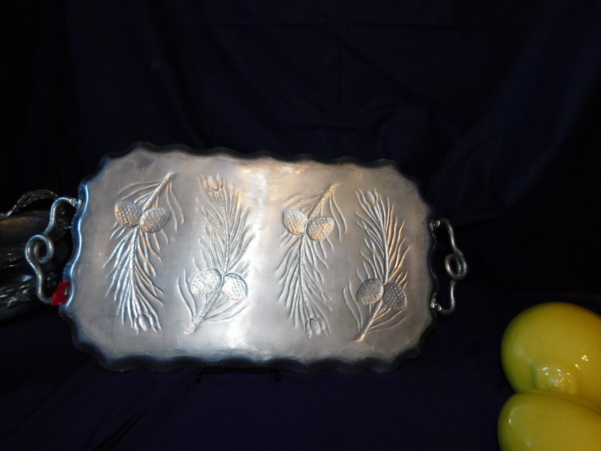 THE LARGER SERVING PLATTER IS IN NEED OF A RIVET ON ONE OF THE HANDLES