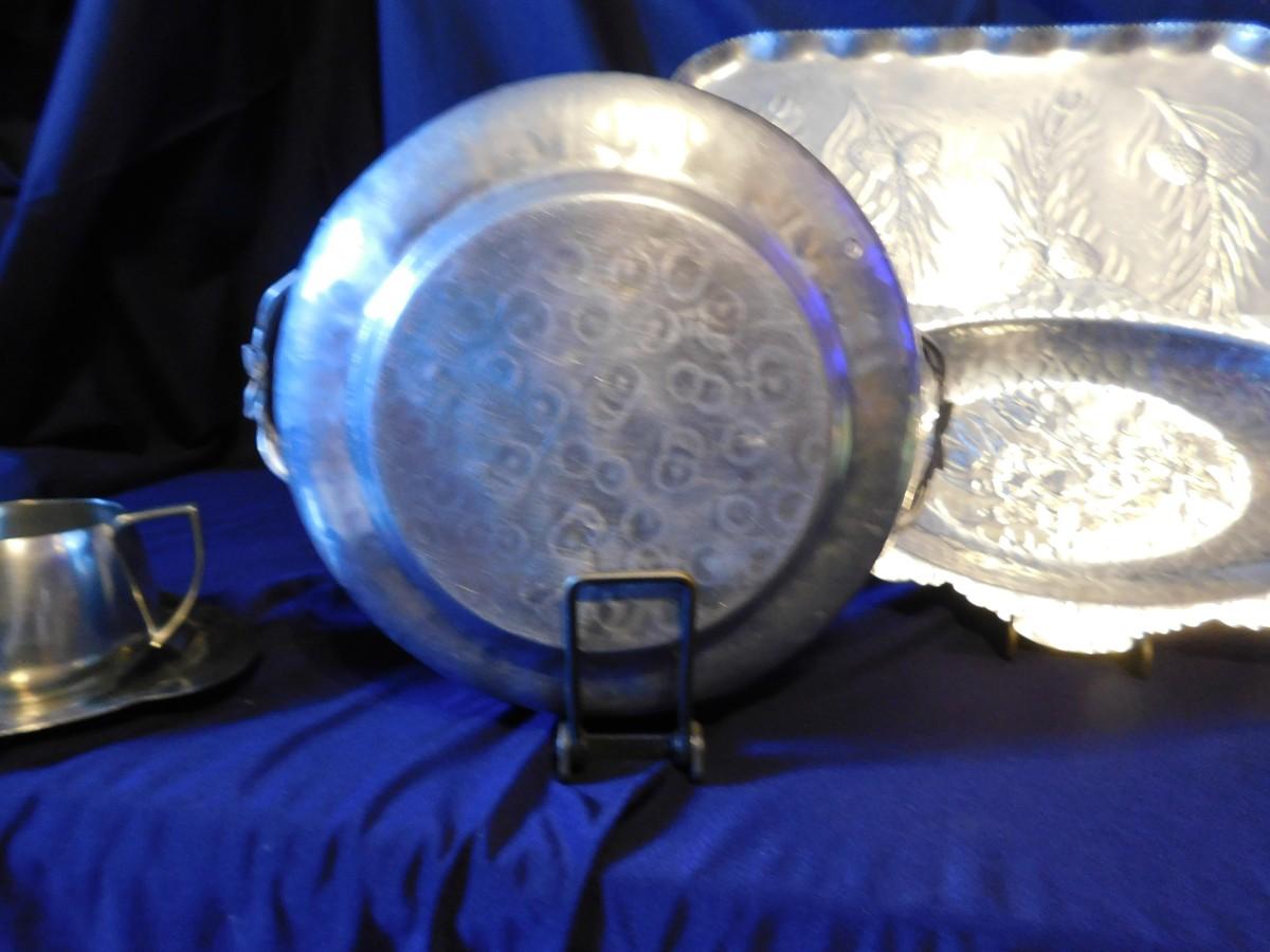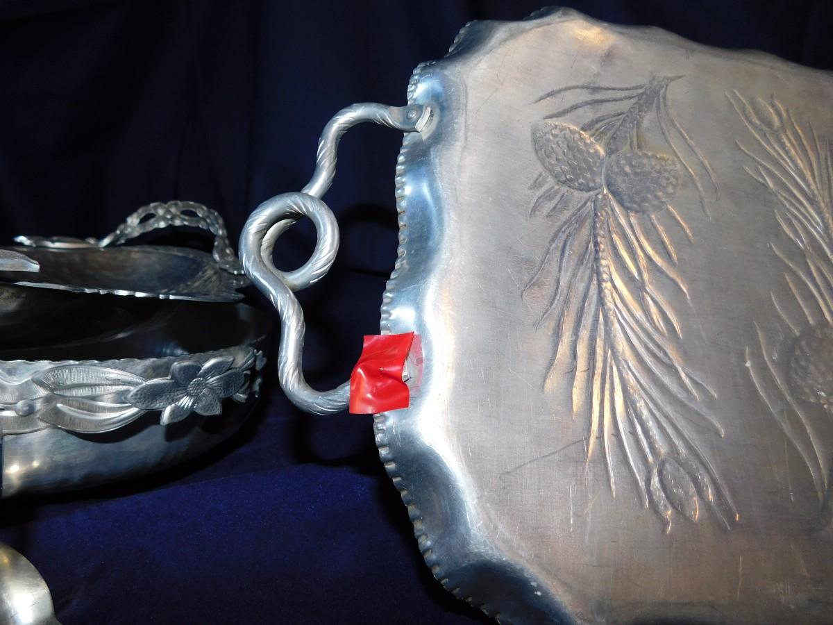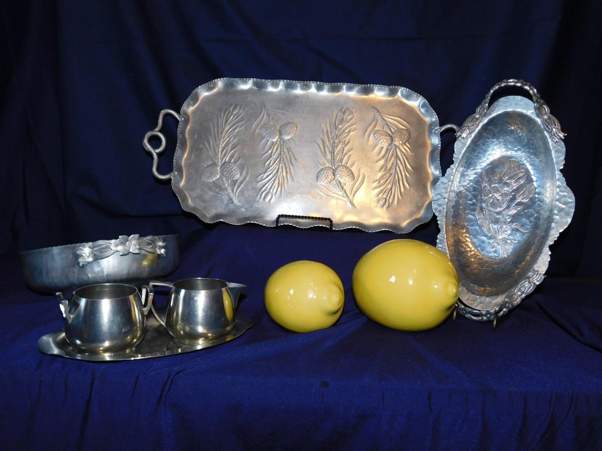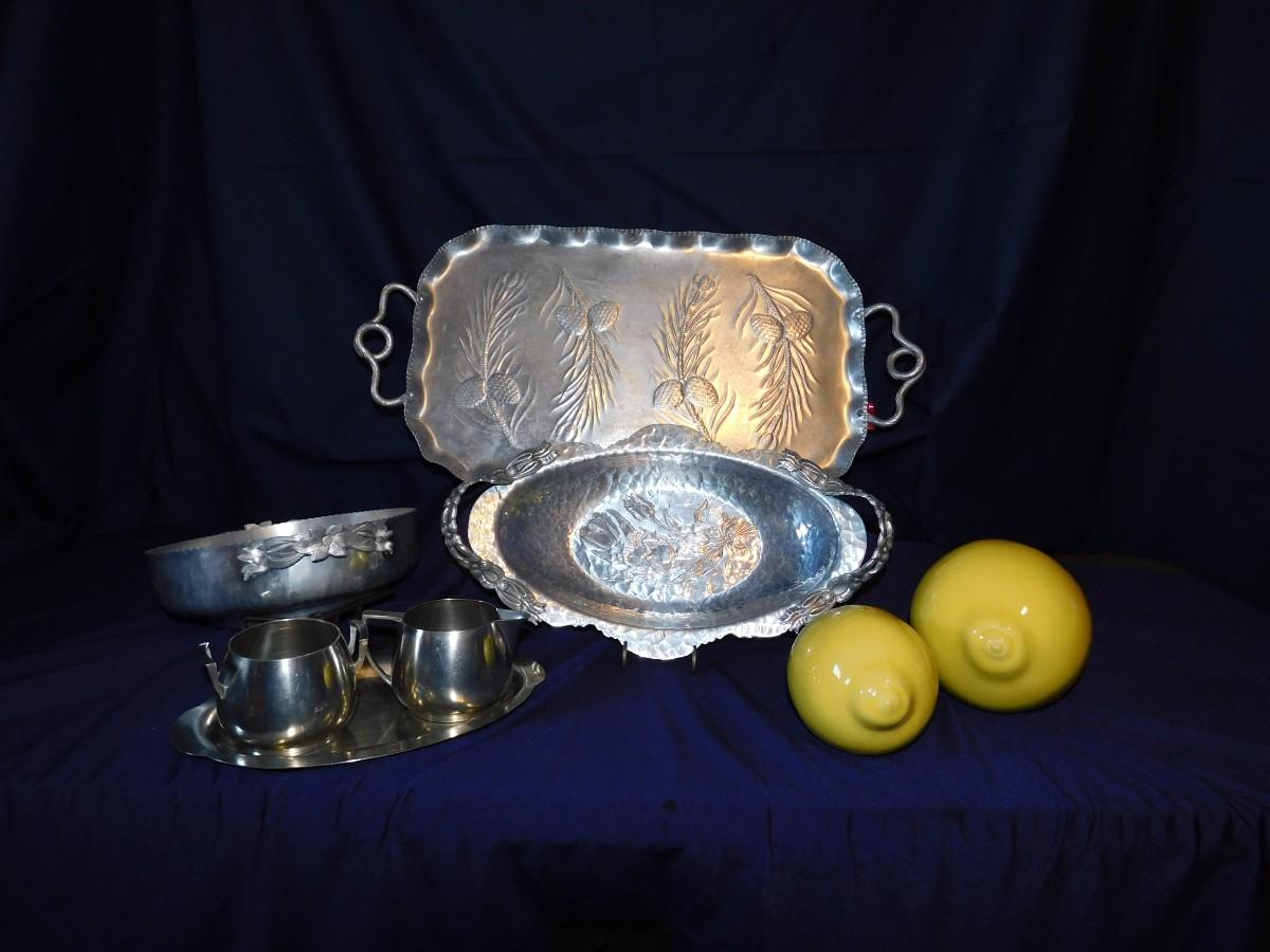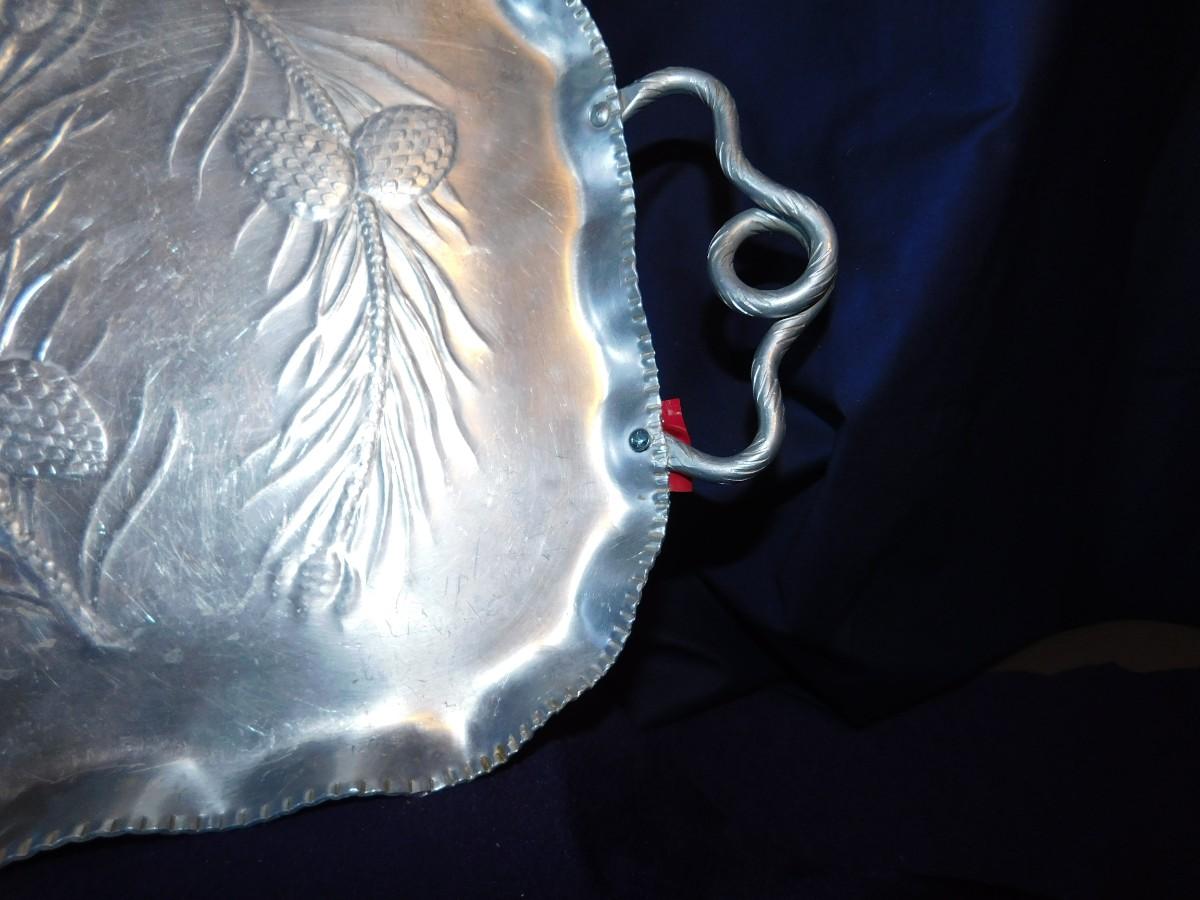 THE LARGER SERVING PLATTER IS IN NEED OF A RIVET ON ONE OF THE HANDLES