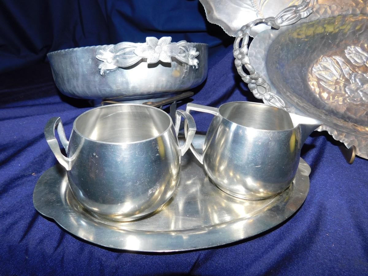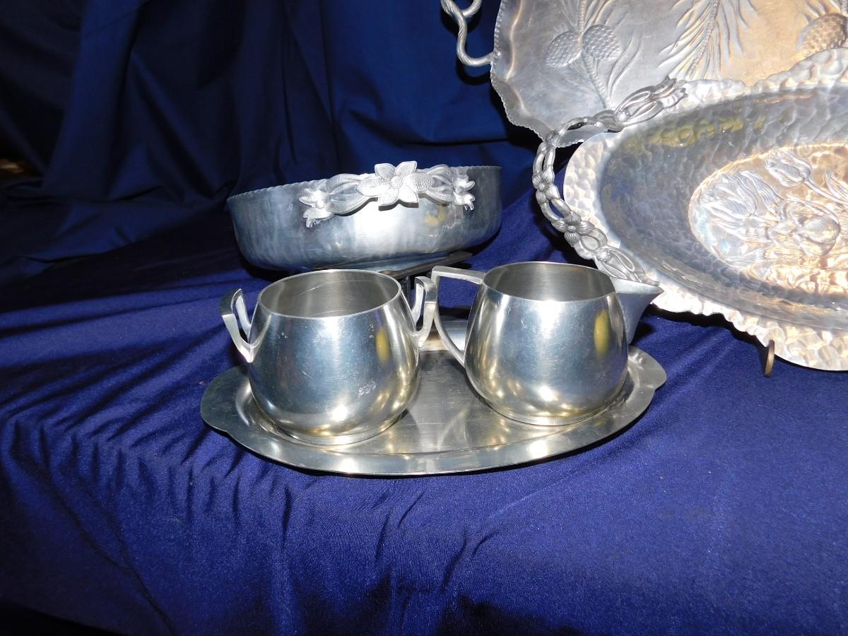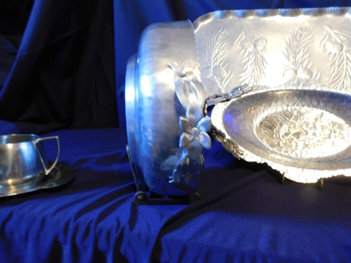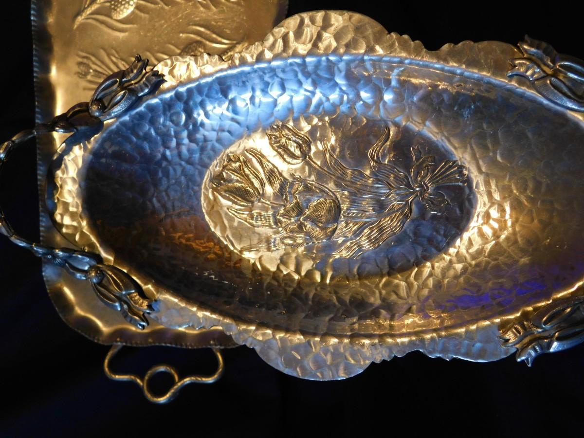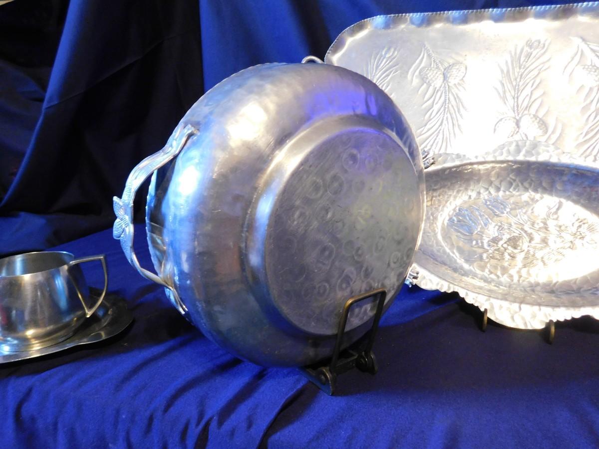 THE LARGER SERVING PLATTER IS IN NEED OF A RIVET ON ONE OF THE HANDLES