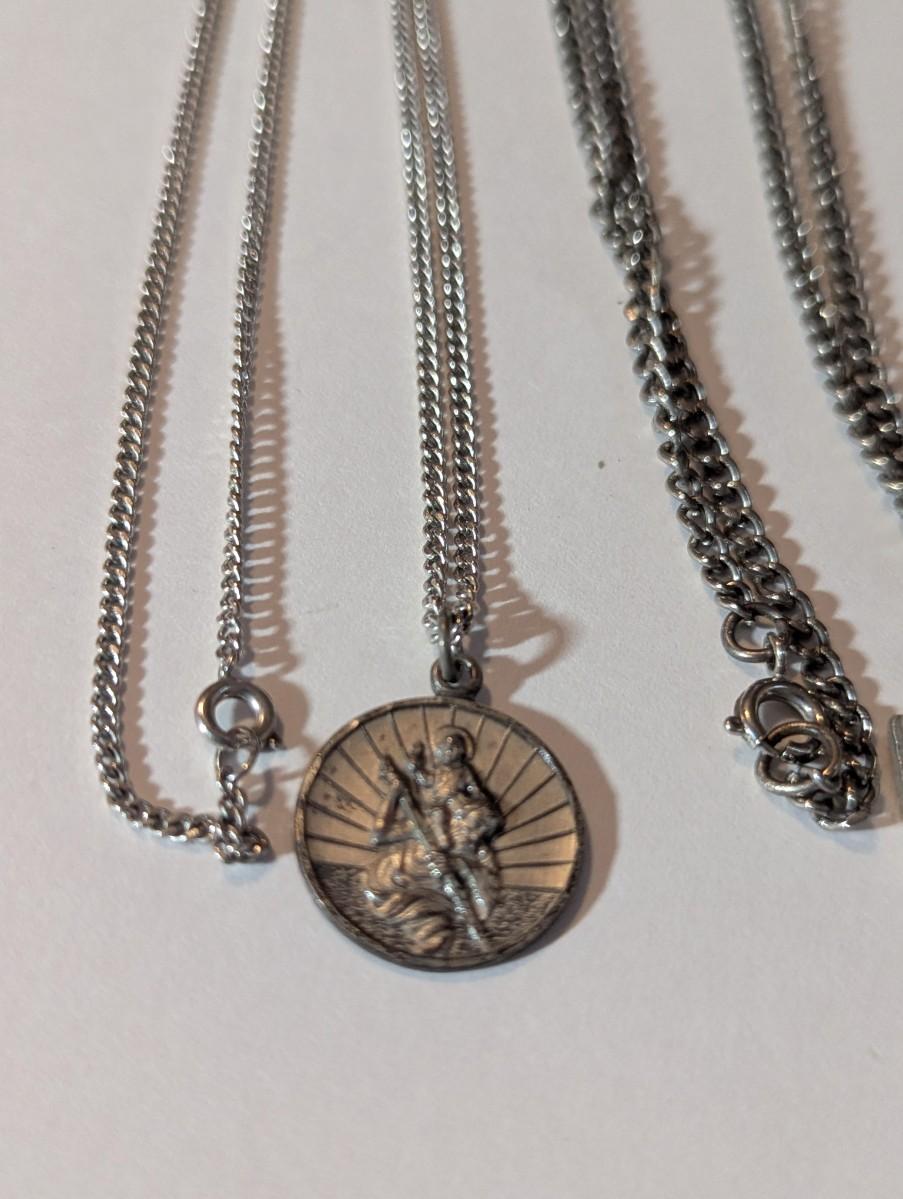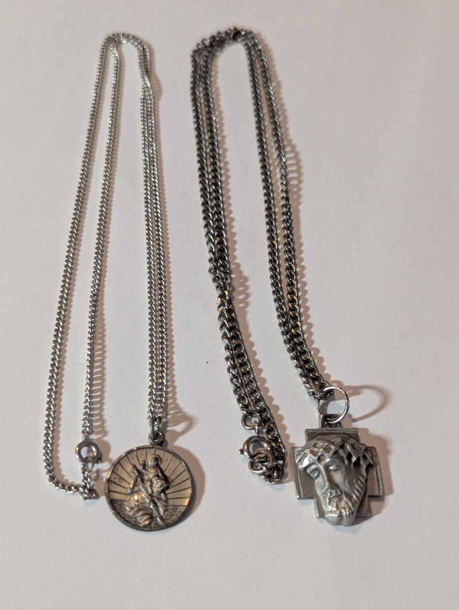 Pewter Jesus Christ Necklace & Pendant & St Christoper Medal With Necklace #13