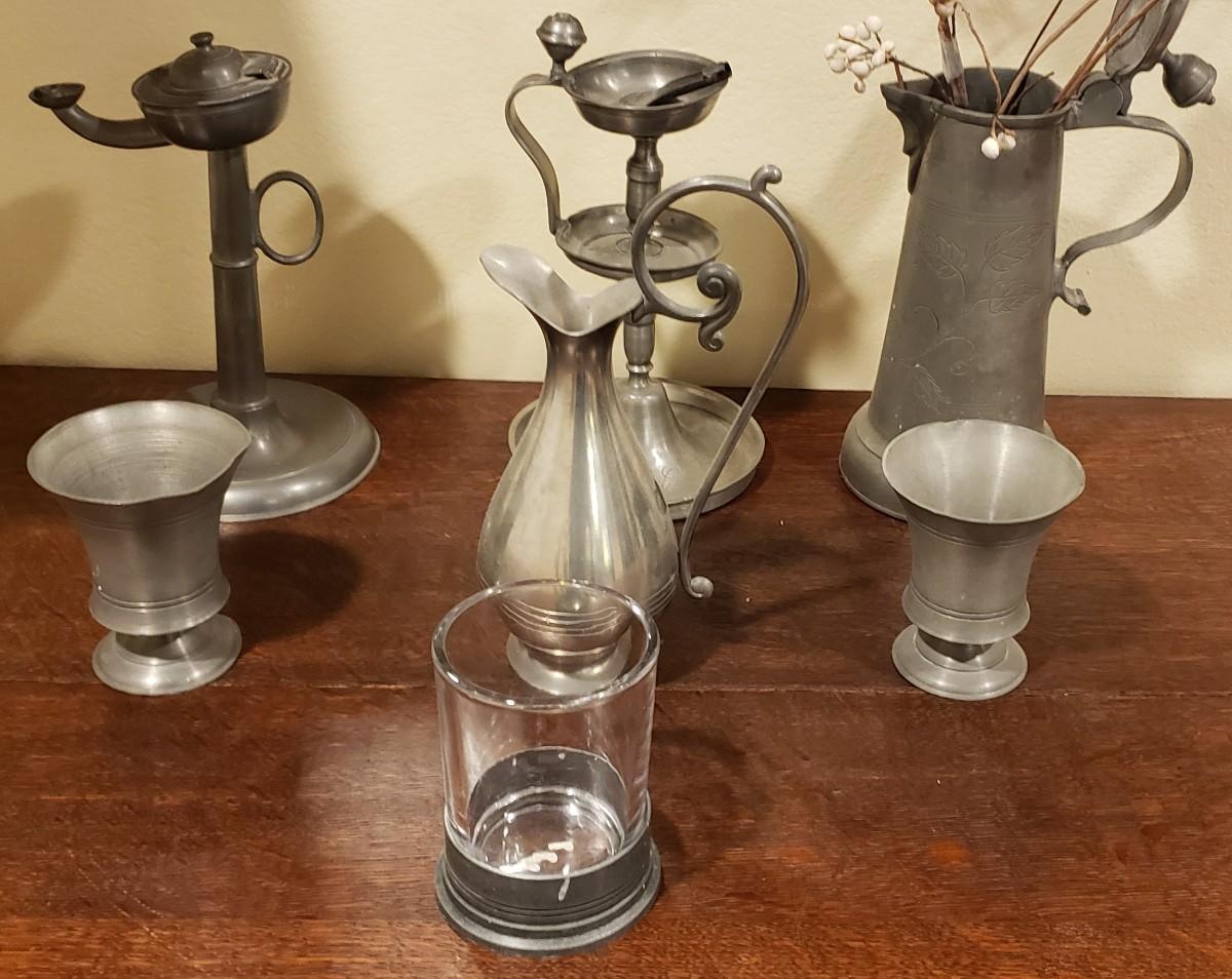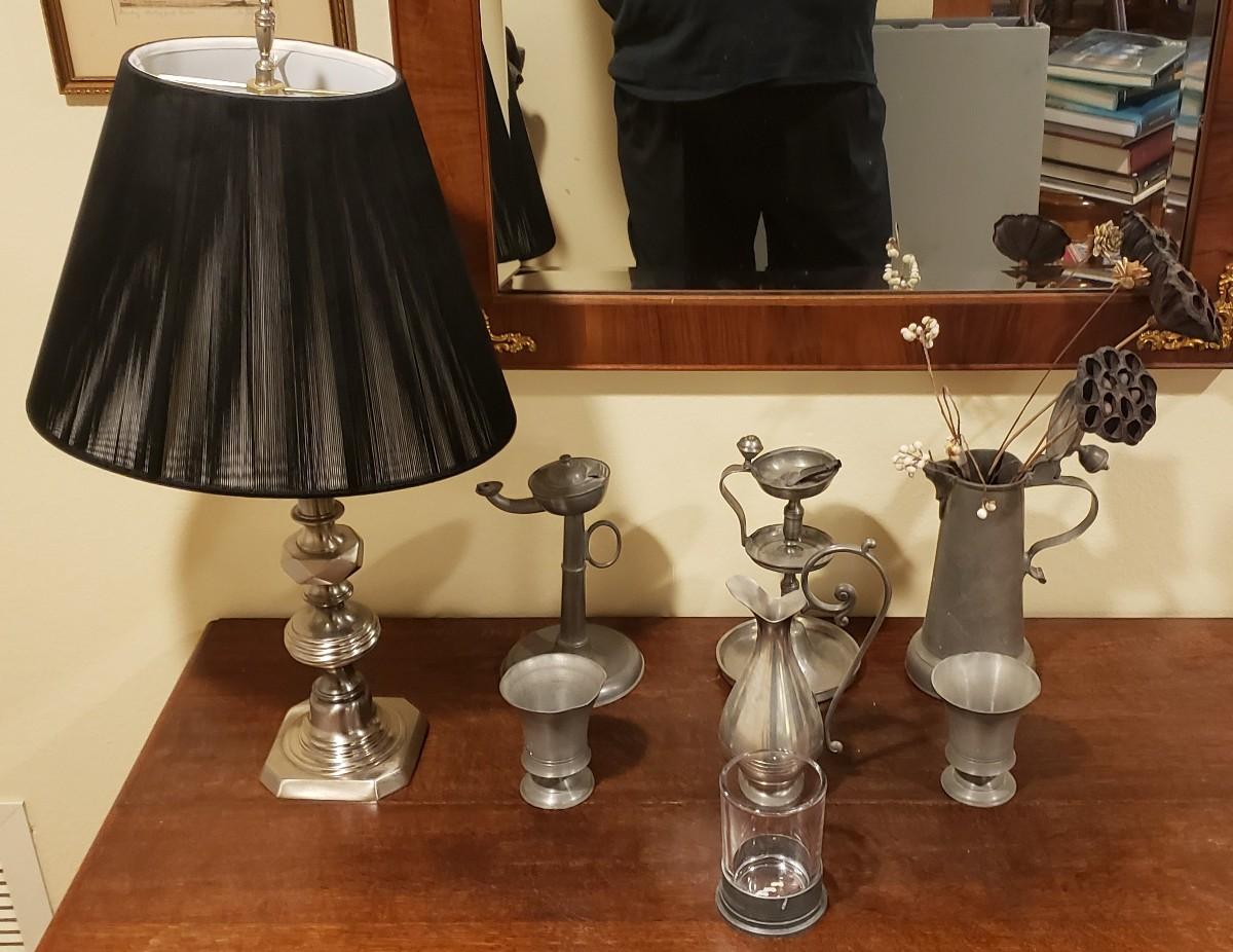 Pewter Lot with SIlver Table Lamp