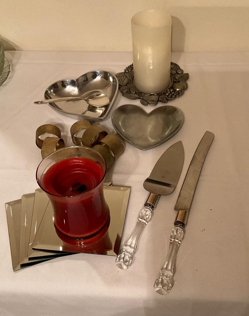 Pewter made in Italy, mirrors, napkin rings, candles, Deep Silver spoon