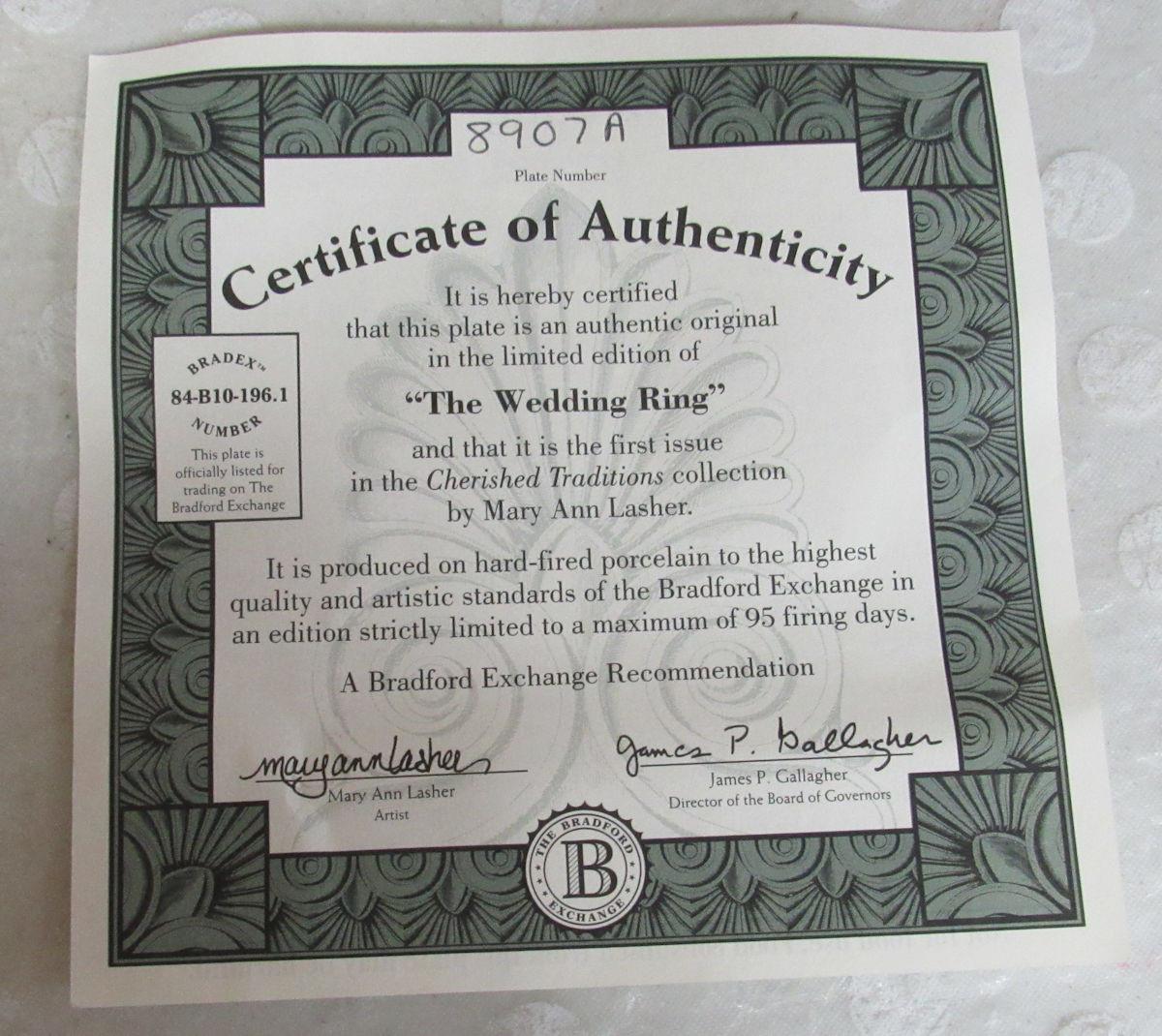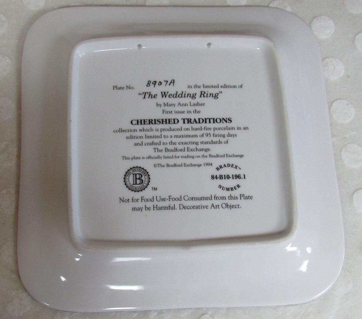 Wedding Ring Pattern Collectors Plate #8907A, From the Cherished Traditions Collection, Bradford Exchange