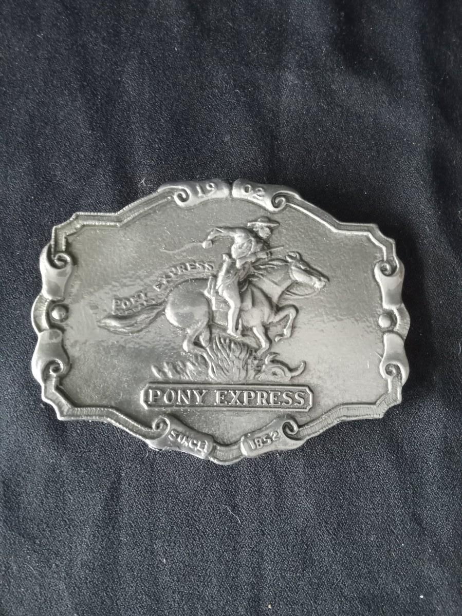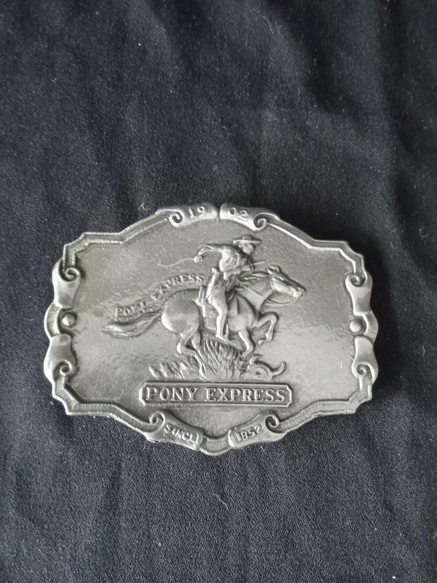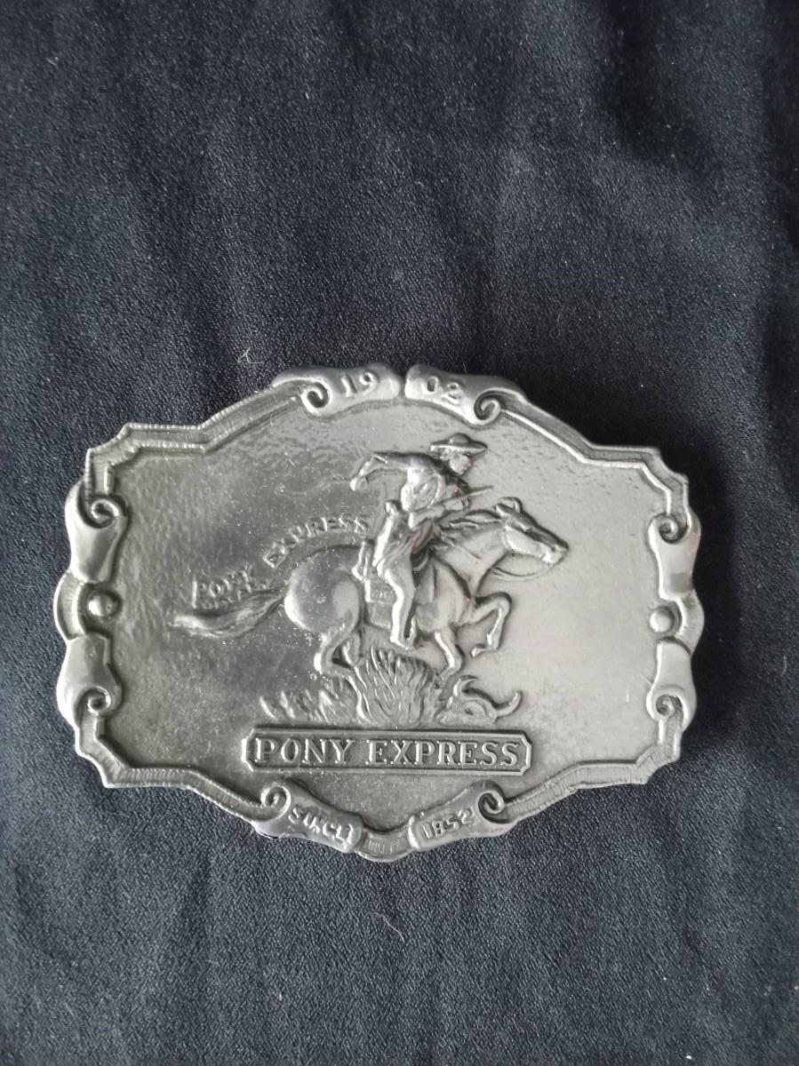 PEWTER PONY EXPRESS AND BRASS MAKITA BELT BUCKLES