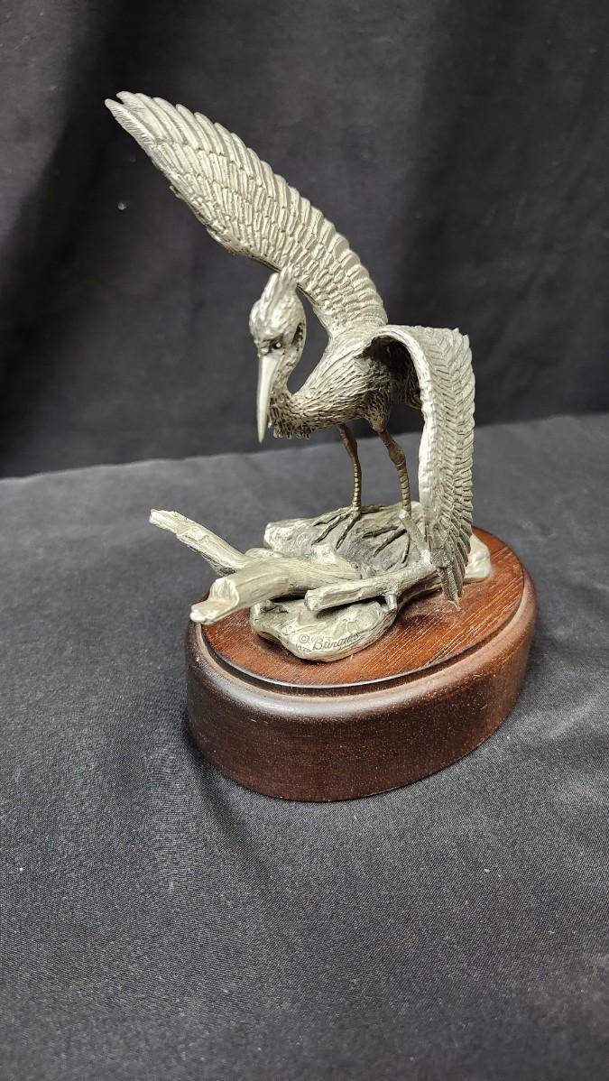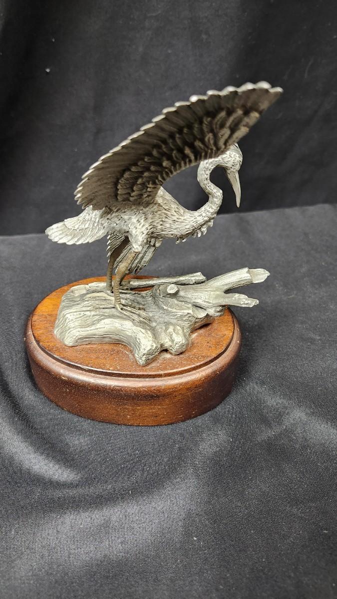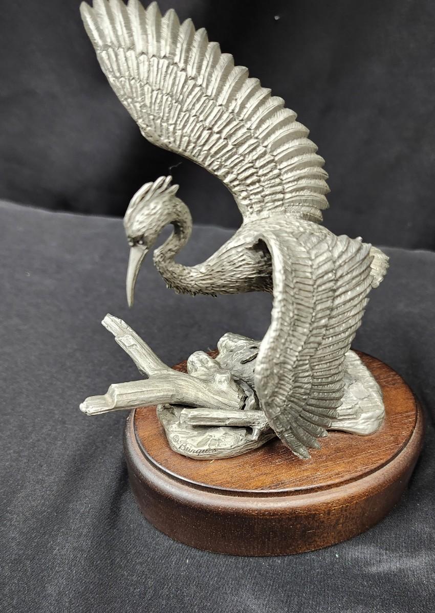 Pewter Sculpture by Irving Burgues "Great White Heron" and Book by John Bull