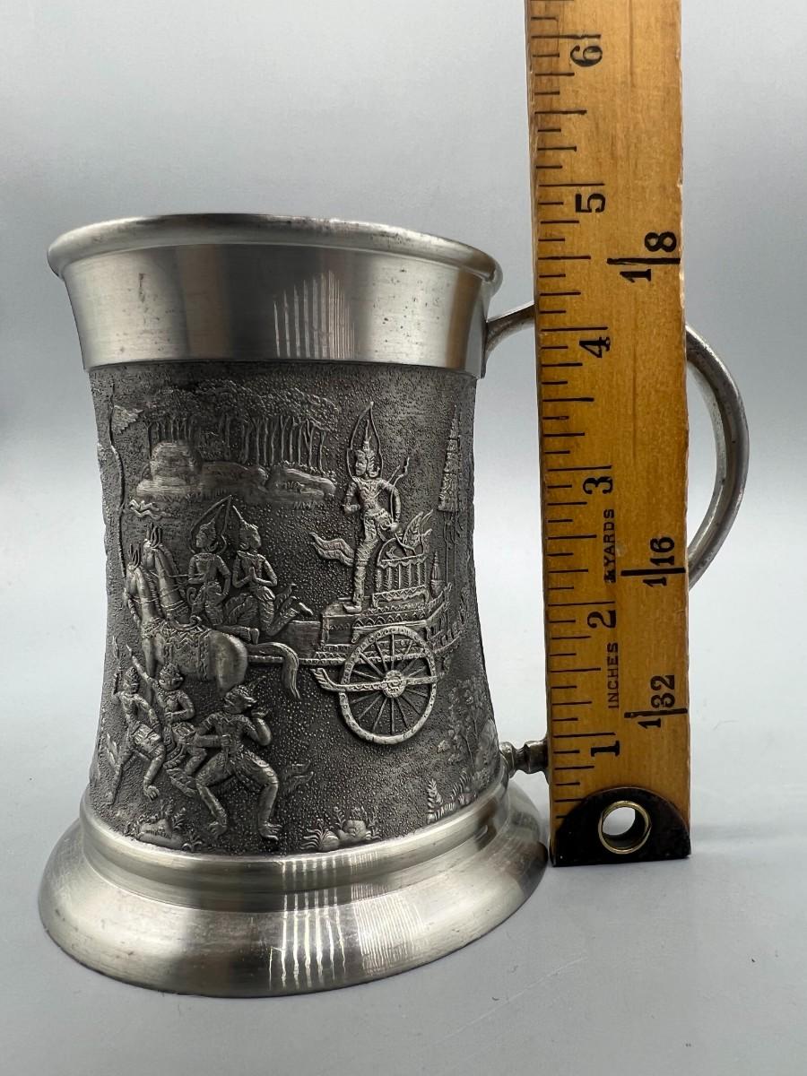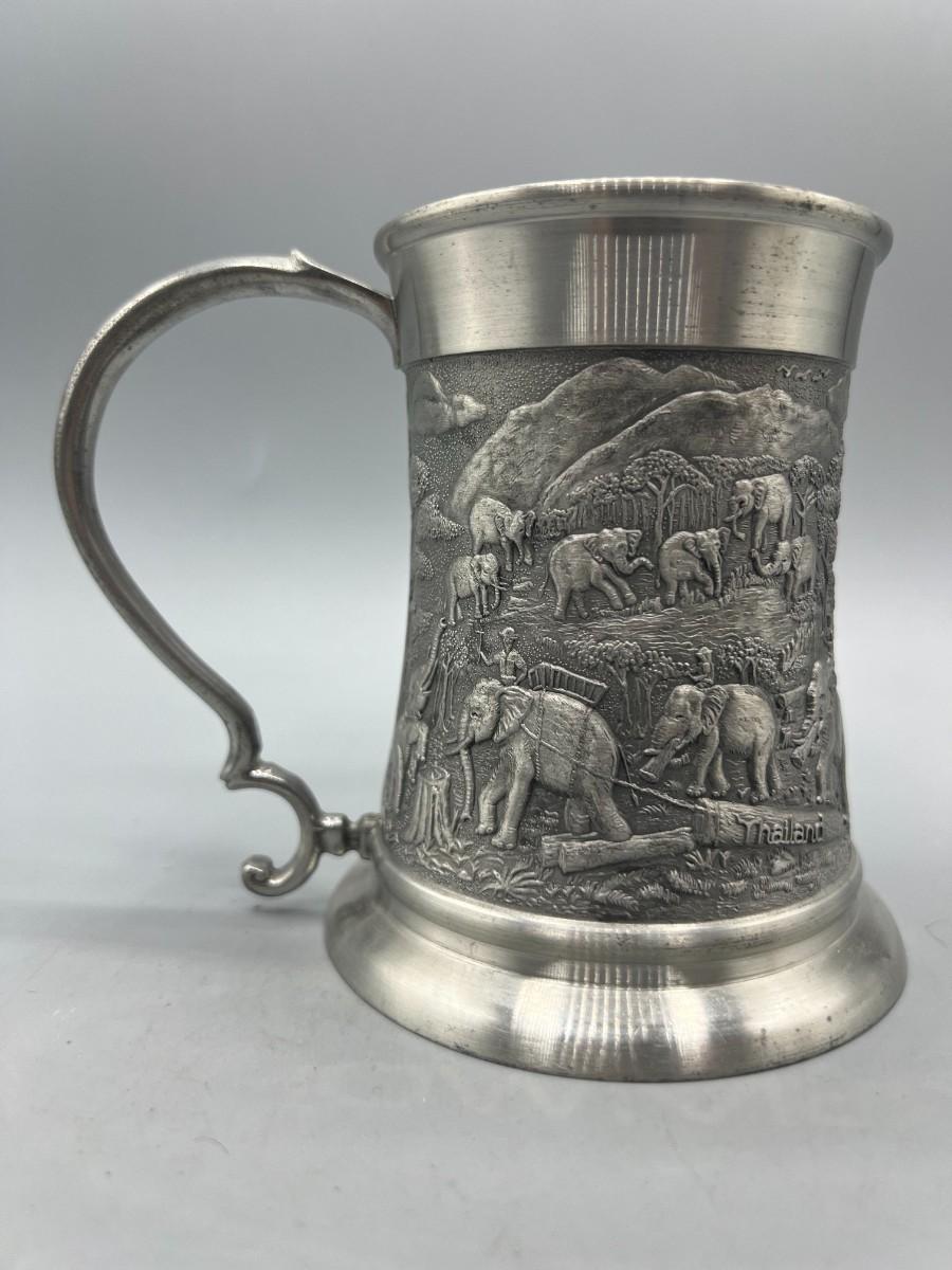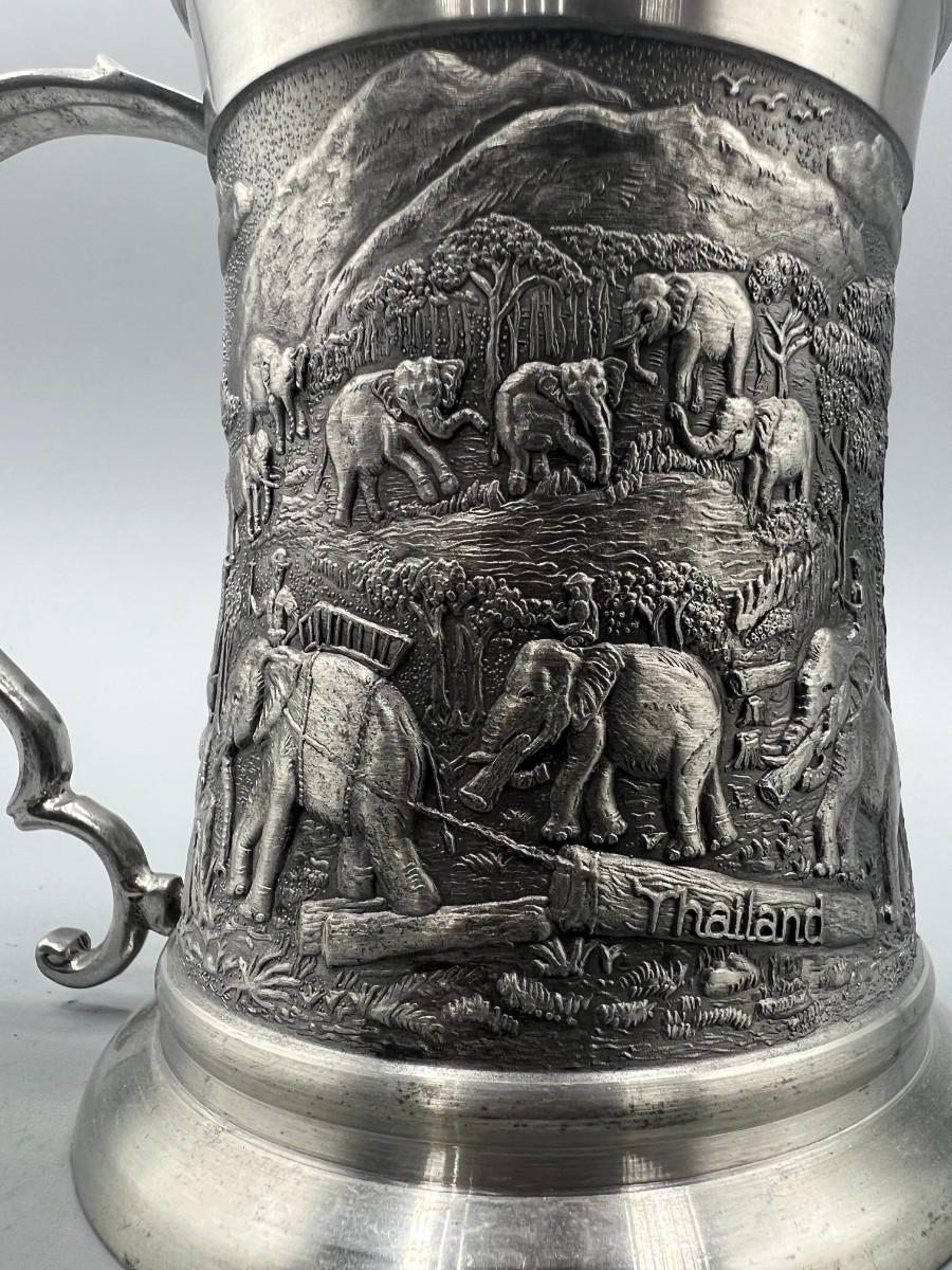 Pewter Souvenir Beer Stein Mug Thailand Elephants and Men