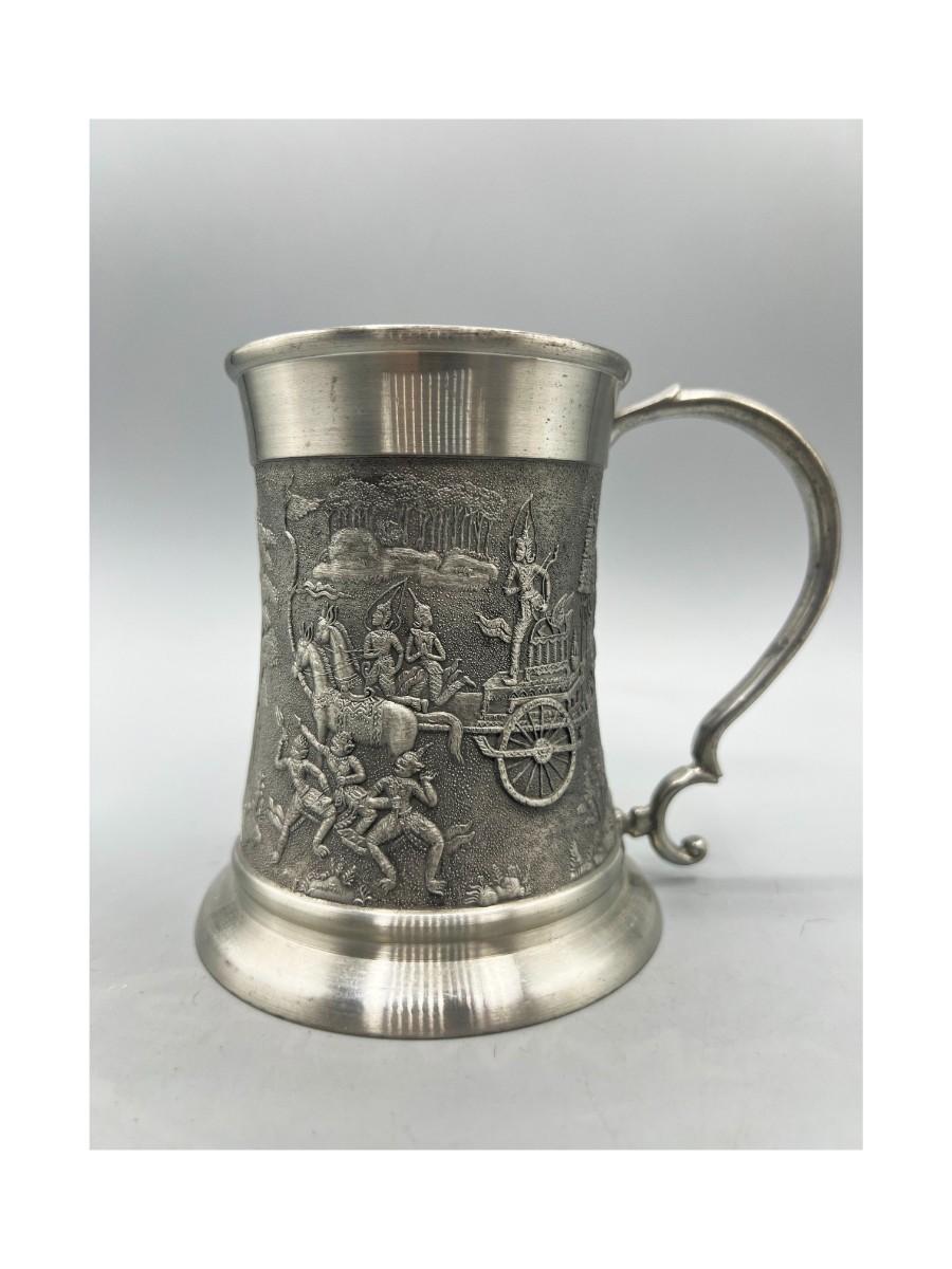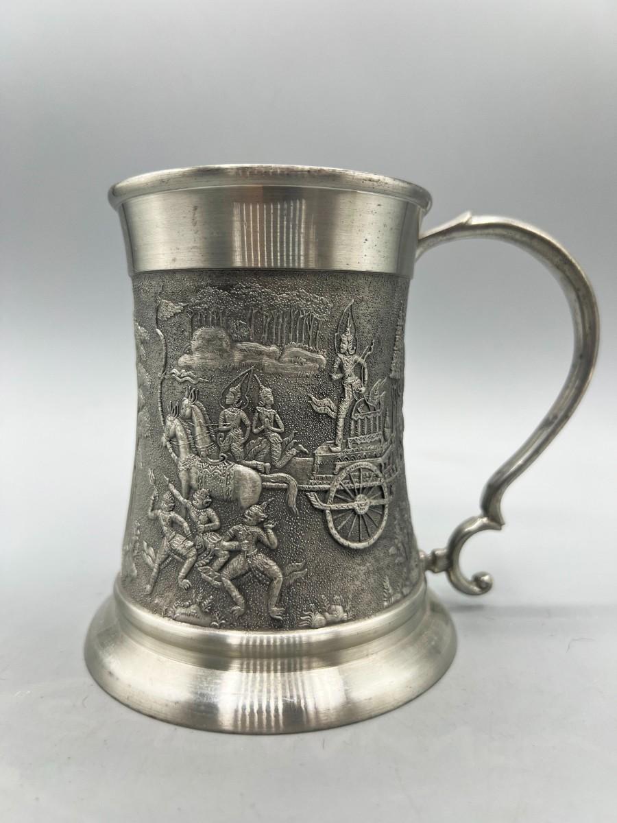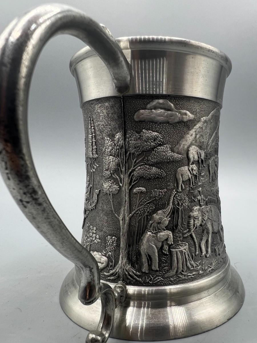 Pewter Souvenir Beer Stein Mug Thailand Elephants and Men