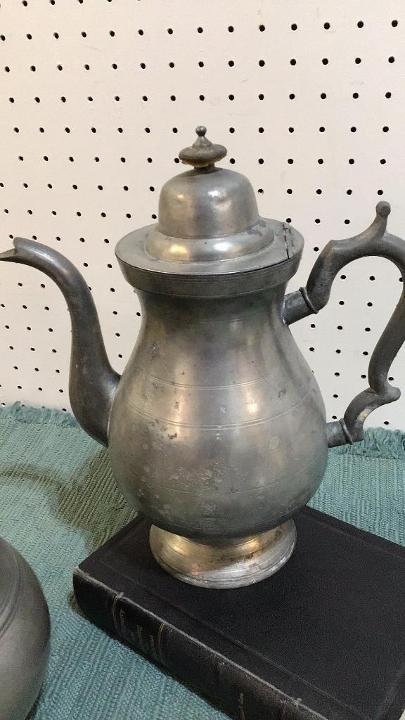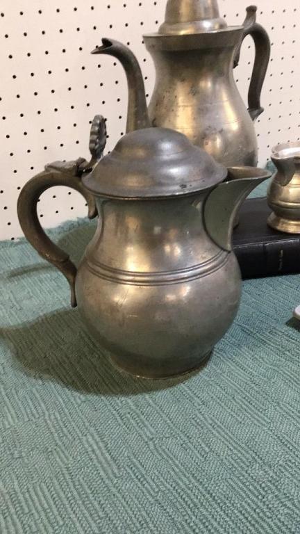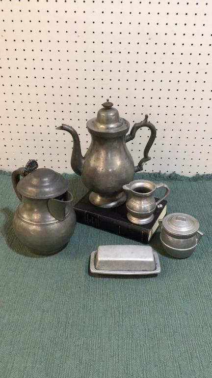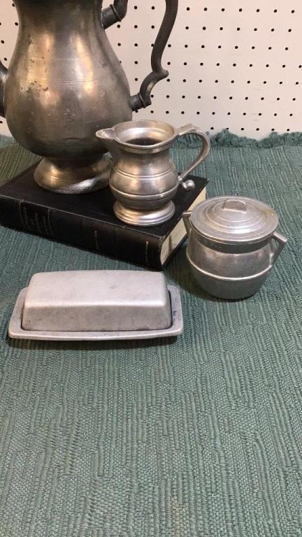 Pewter Teapot, Ale Flagon, Cream/Sugar, Butter