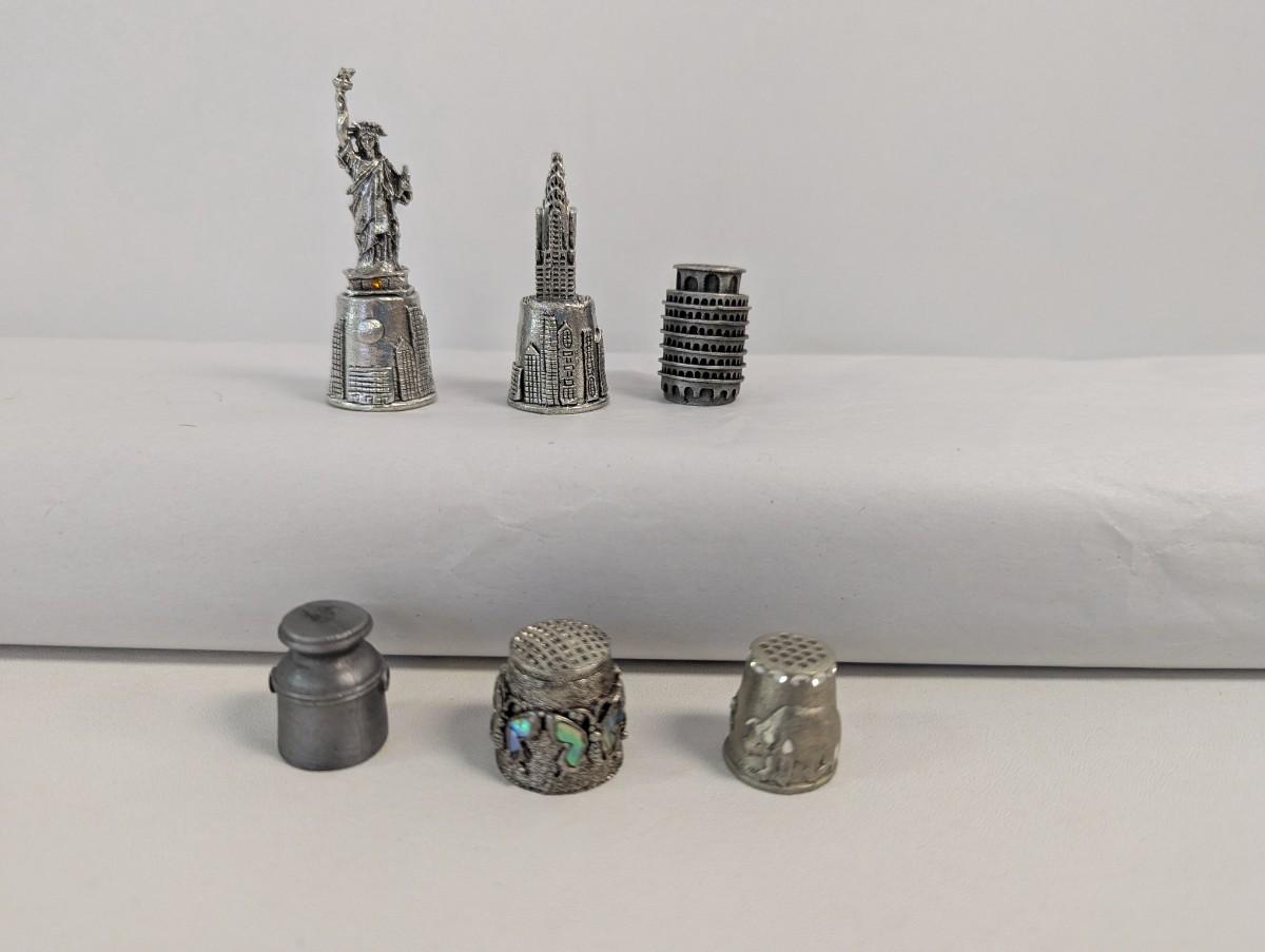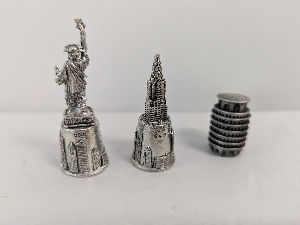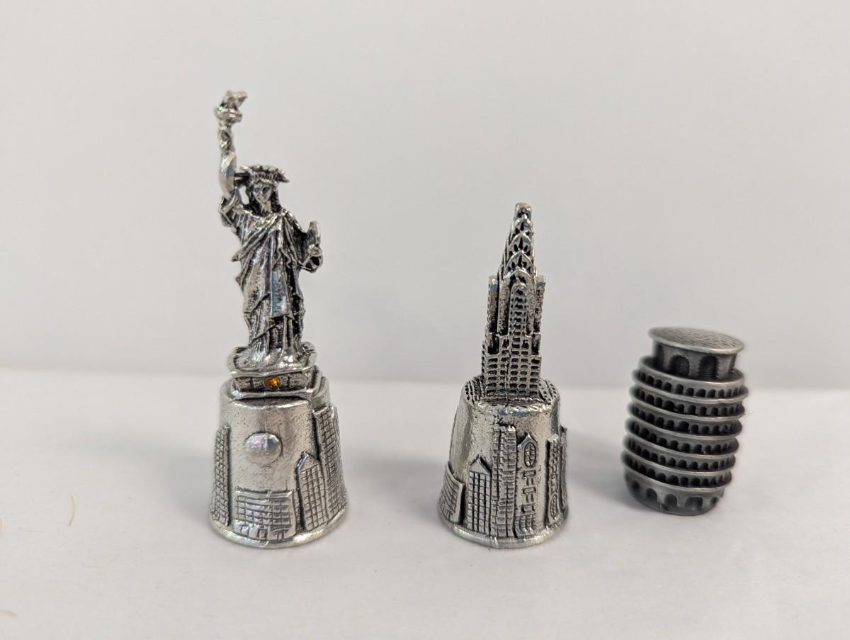 Pewter Trinkets Liberty Bell With Yellow Stone #6476 Empire Building #6489 Butterfly & Pig Designs