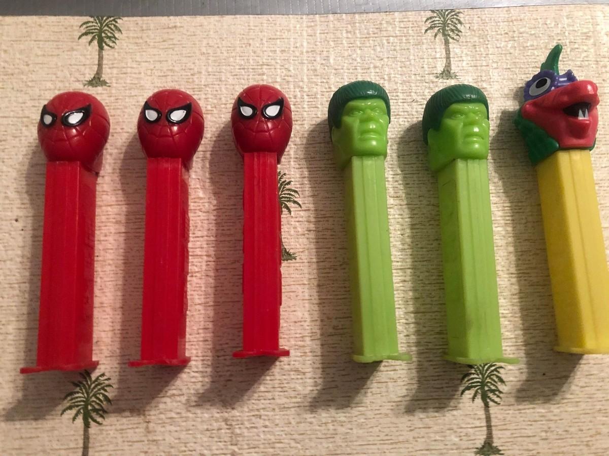 Pez Lot Marvel Spiderman, Hulk and Dinasaur China/Austria