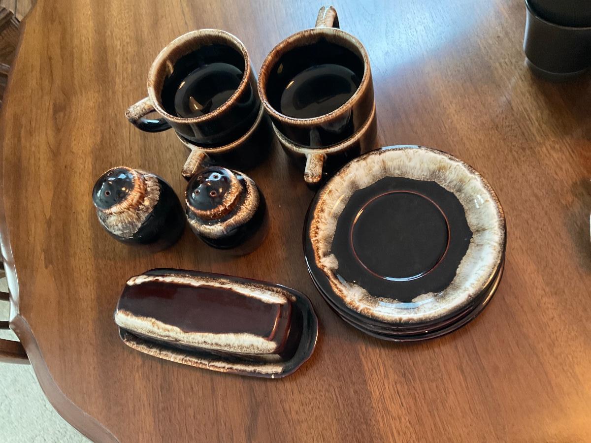 Includes 4 mugs, s & p, butter plate and 3 saucers