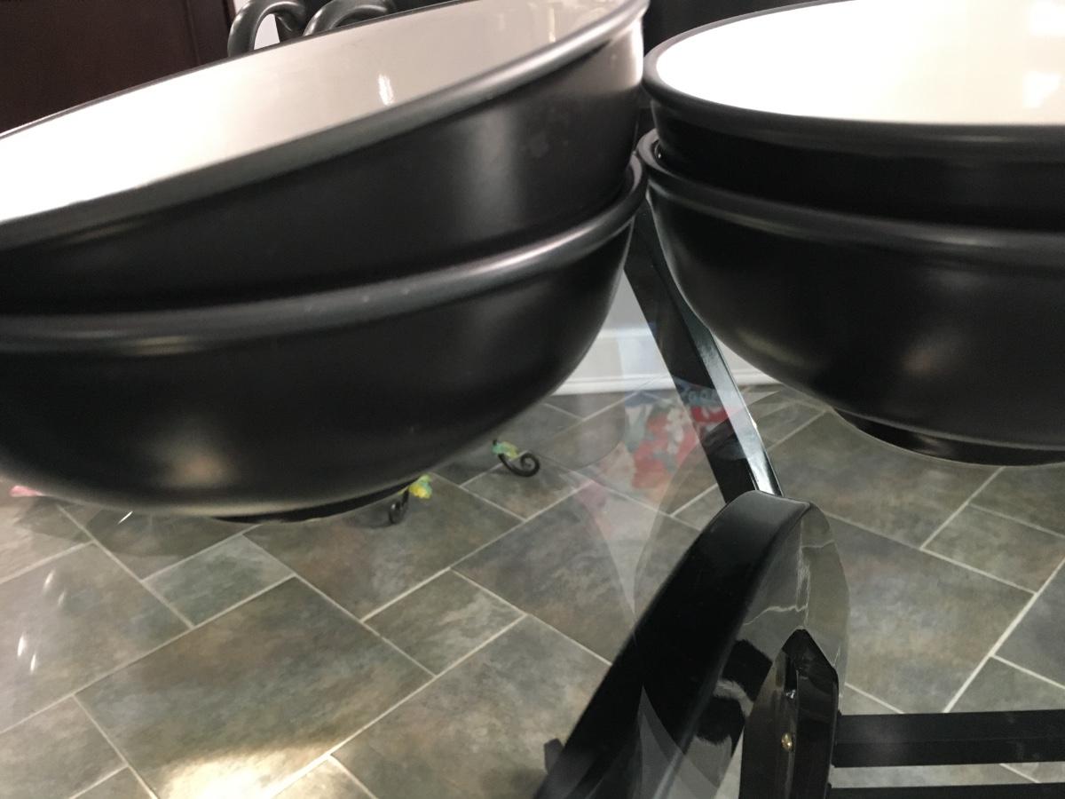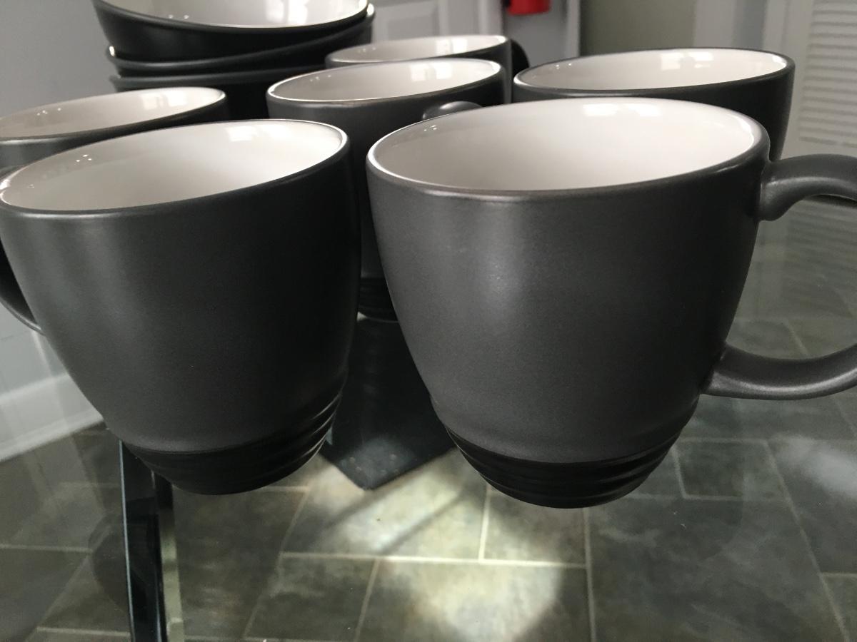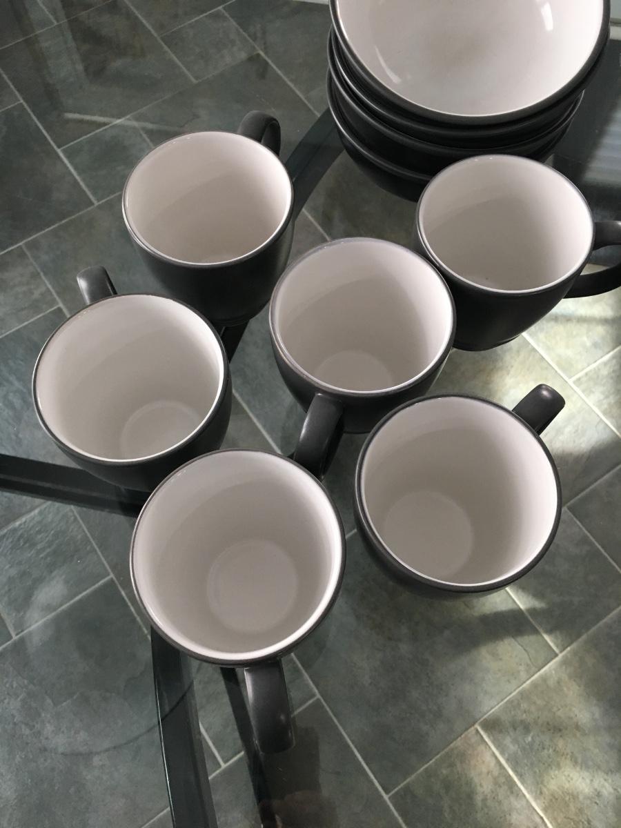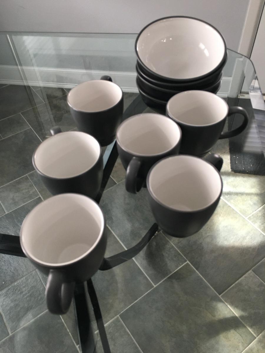 Set of 6 coffee cups and 4 bowls. Some very light crazing in bowls. No chips or cracks.