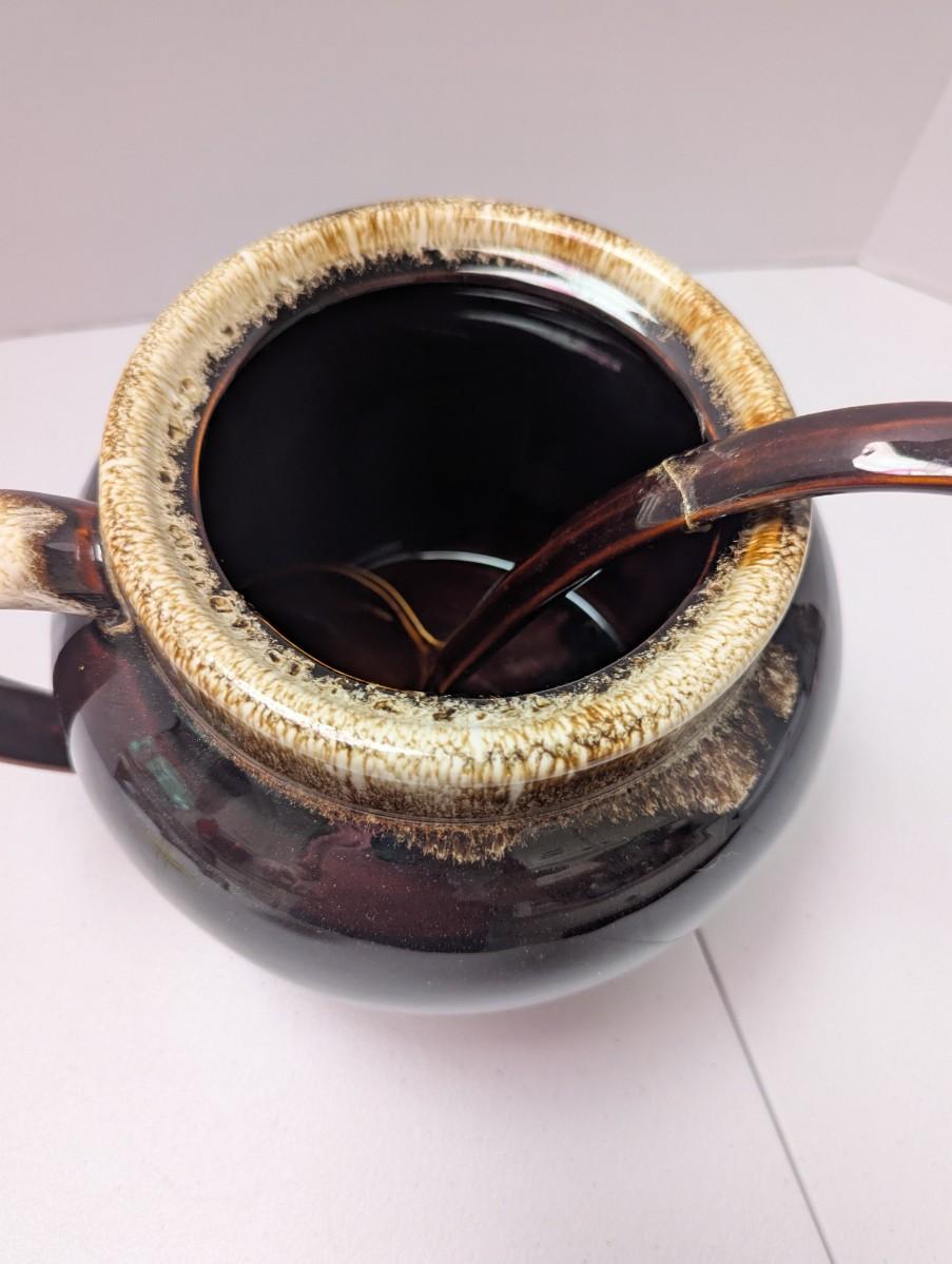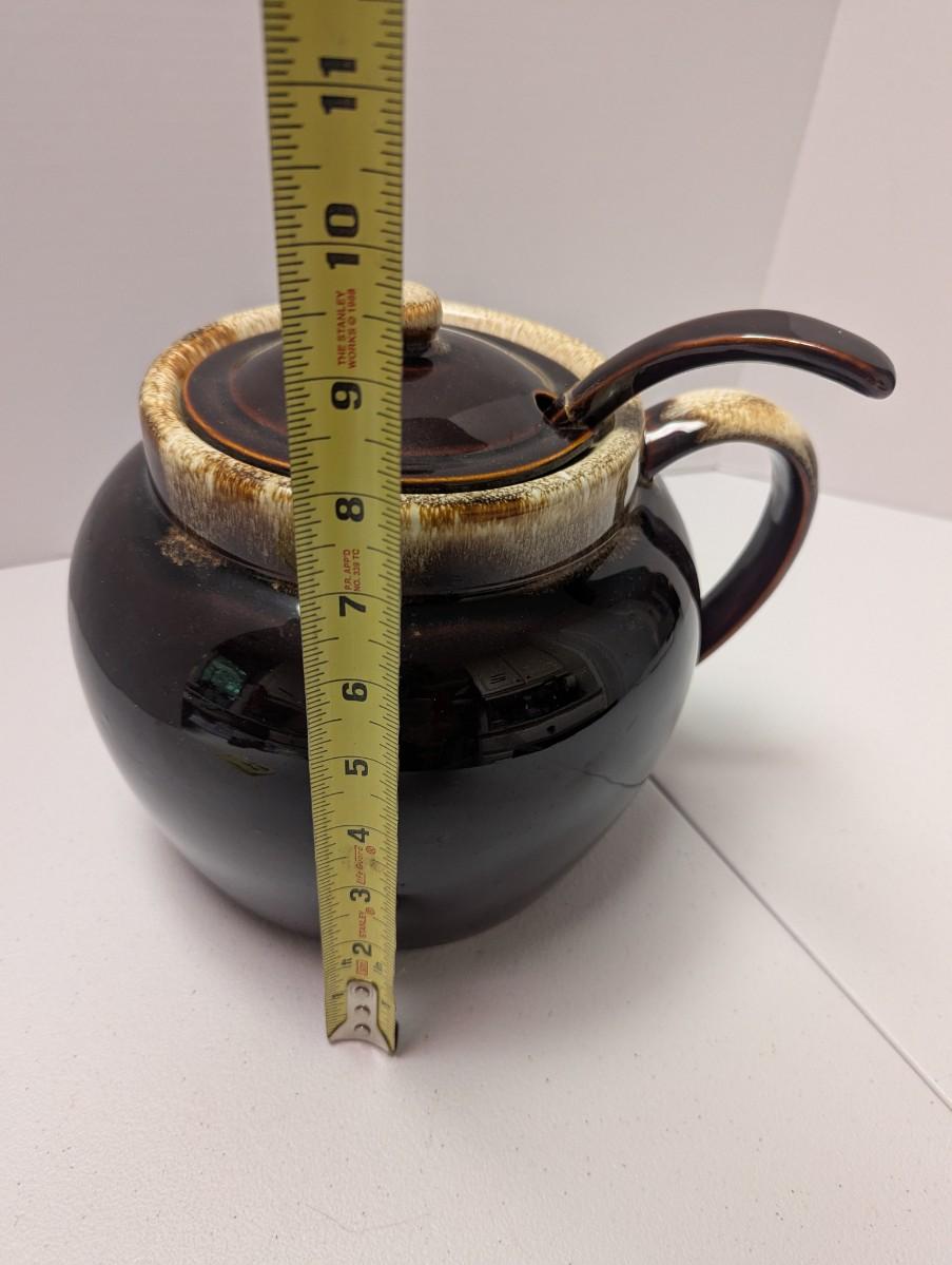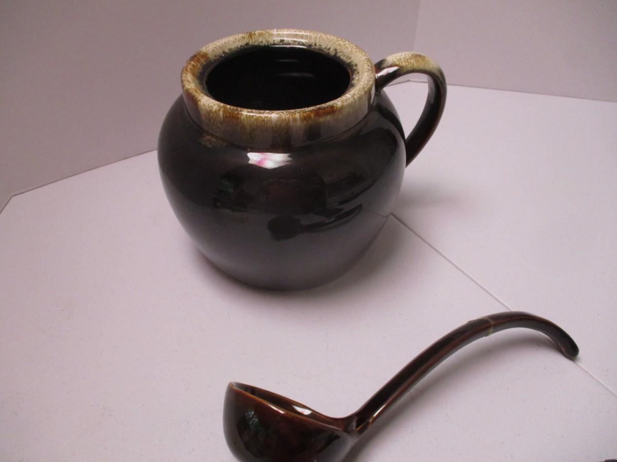 Pfaltzgraff Brown Drip Bean Pot & Ladle (K)