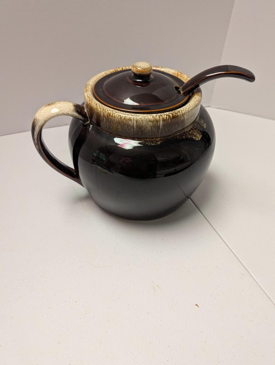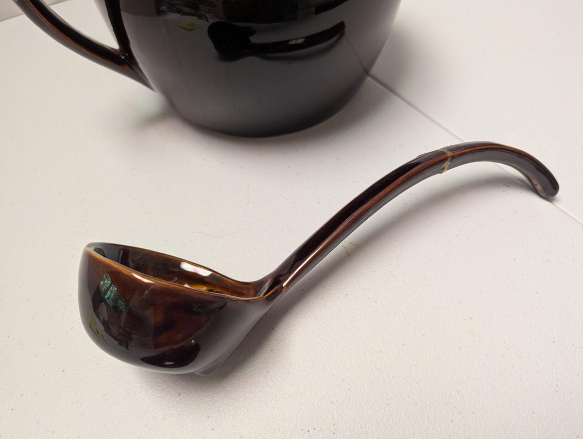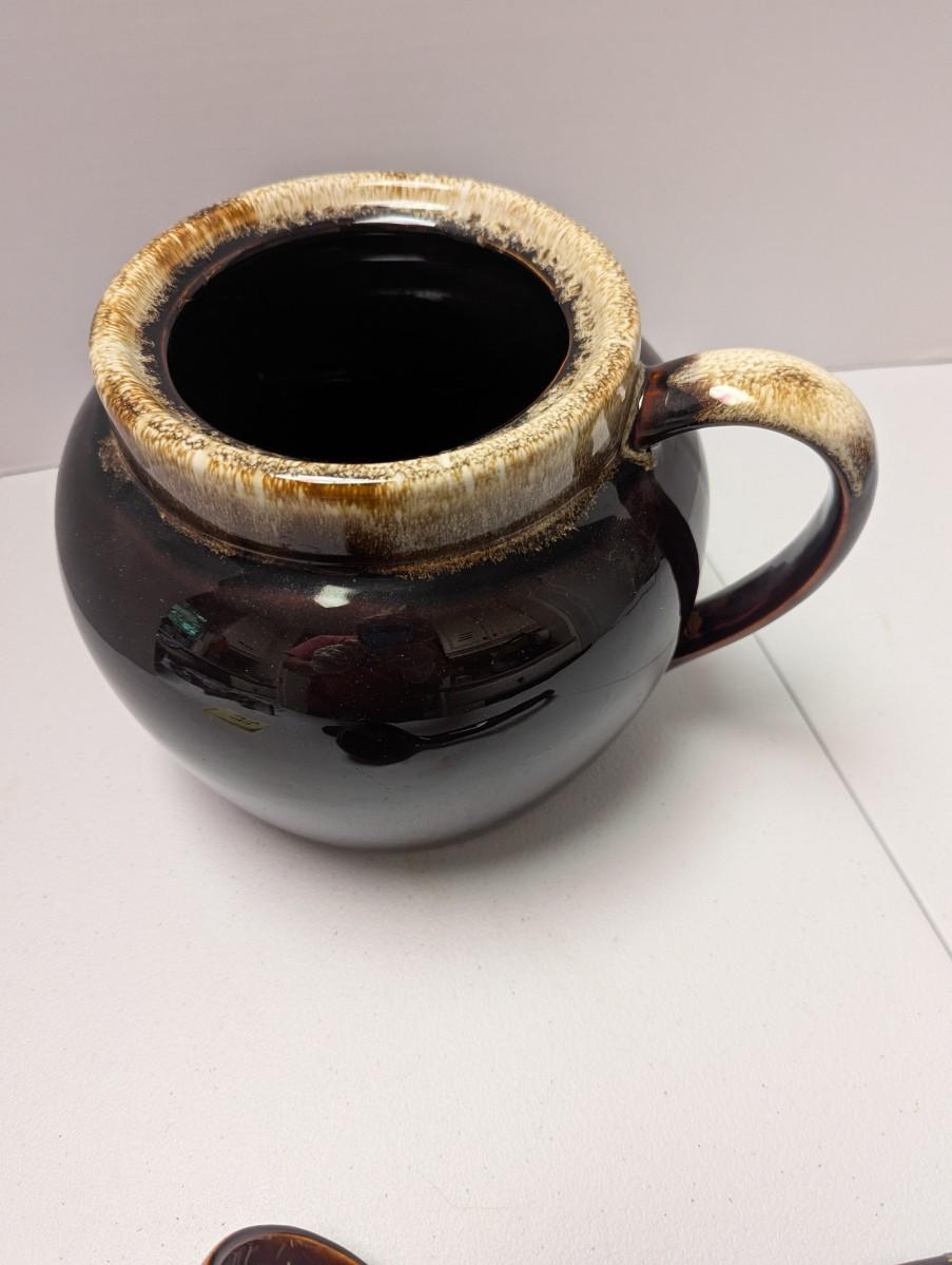 Pfaltzgraff Brown Drip Bean Pot & Ladle (K)