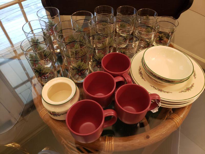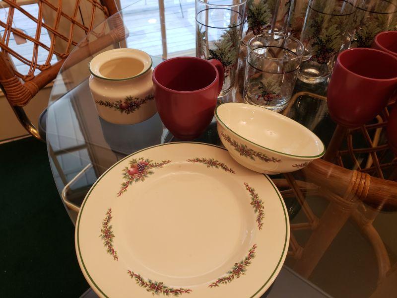 Pfaltzgraff Christmas set & Wooden Cannister set