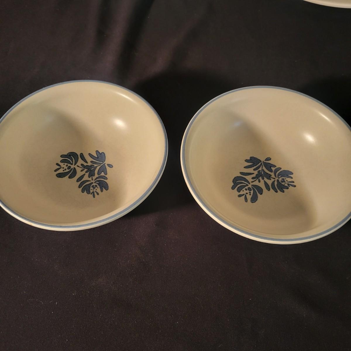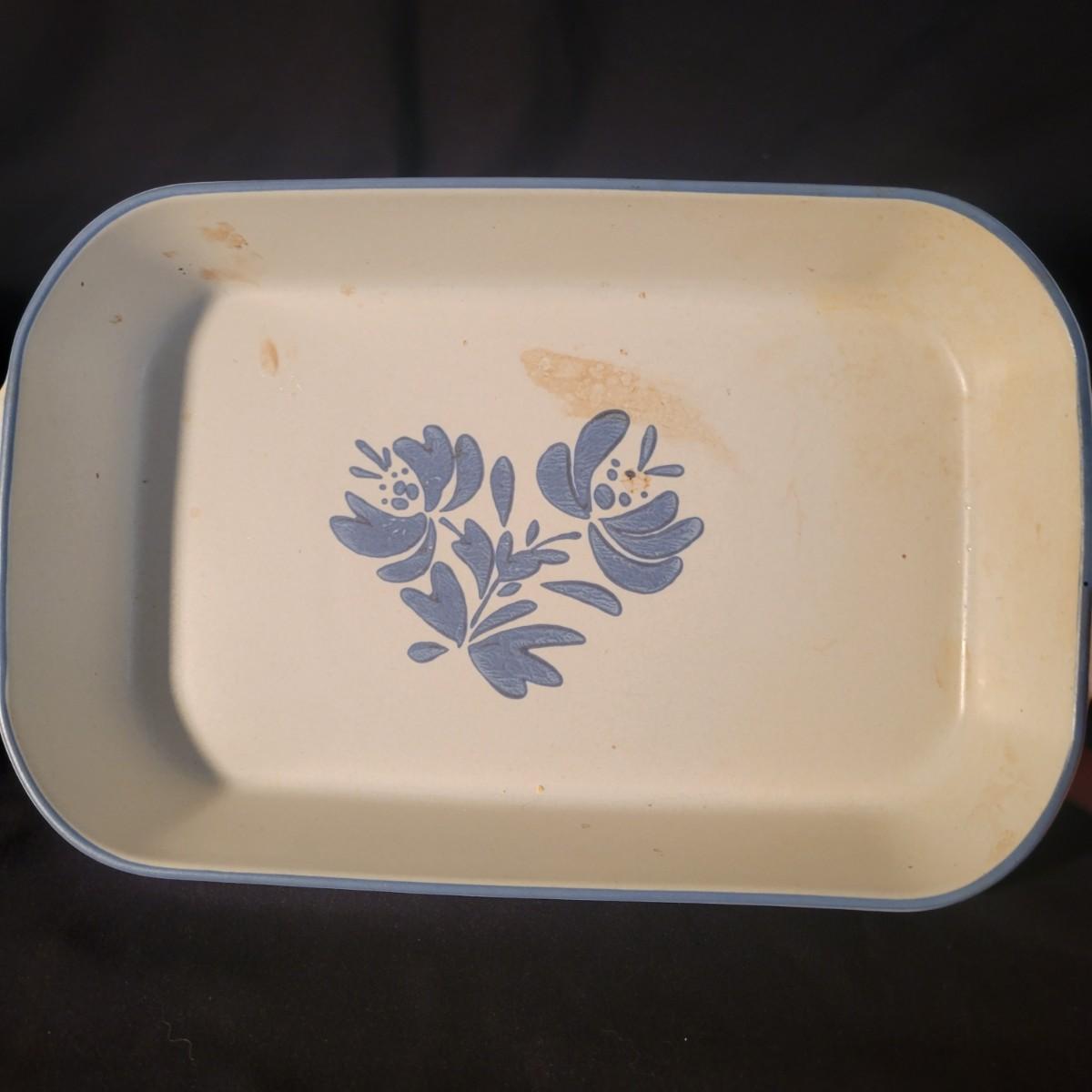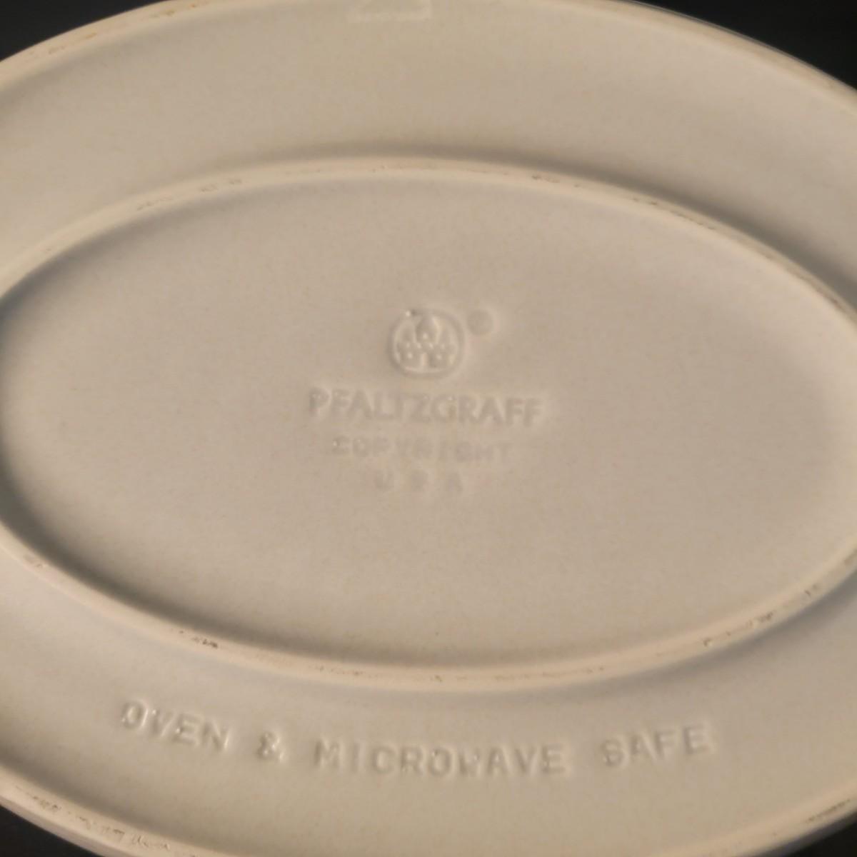 A collection of Pfaltzgraff kitchenware in good condition. Included are two bowls and plates, a medium sized baking dish, and a large baking dish. Large baking dish measures approximately 14" x 8" x 2". One bowl does have a chip and the large baking dish does appear to be permanently stained. Shipping available. Shipping can be costly please call UPS store at 828-252-6930 for estimate