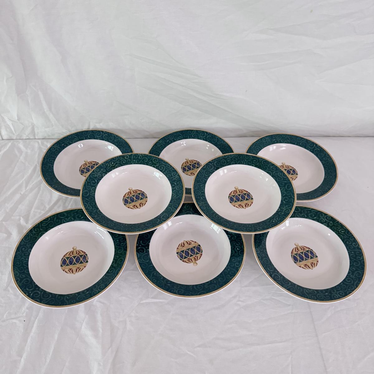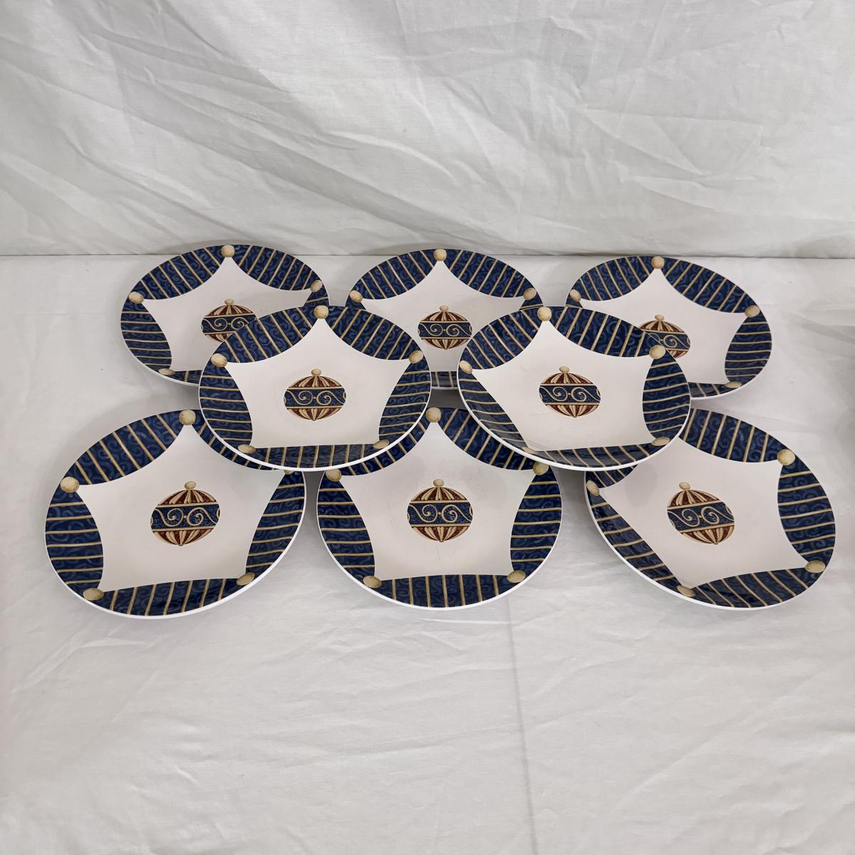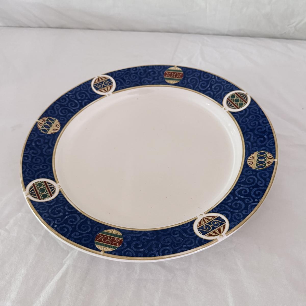 This lot includes the Pfaltzgraff “Royal Holiday” ceramic collection of eight green plates with an ornament, eight red plates with Christmas trees, eight navy plates with ornaments, one large serving plate, and eight mugs. See pictures for all details. The larger serving plate measures 13.5” x 1.5”H. Shipping available.