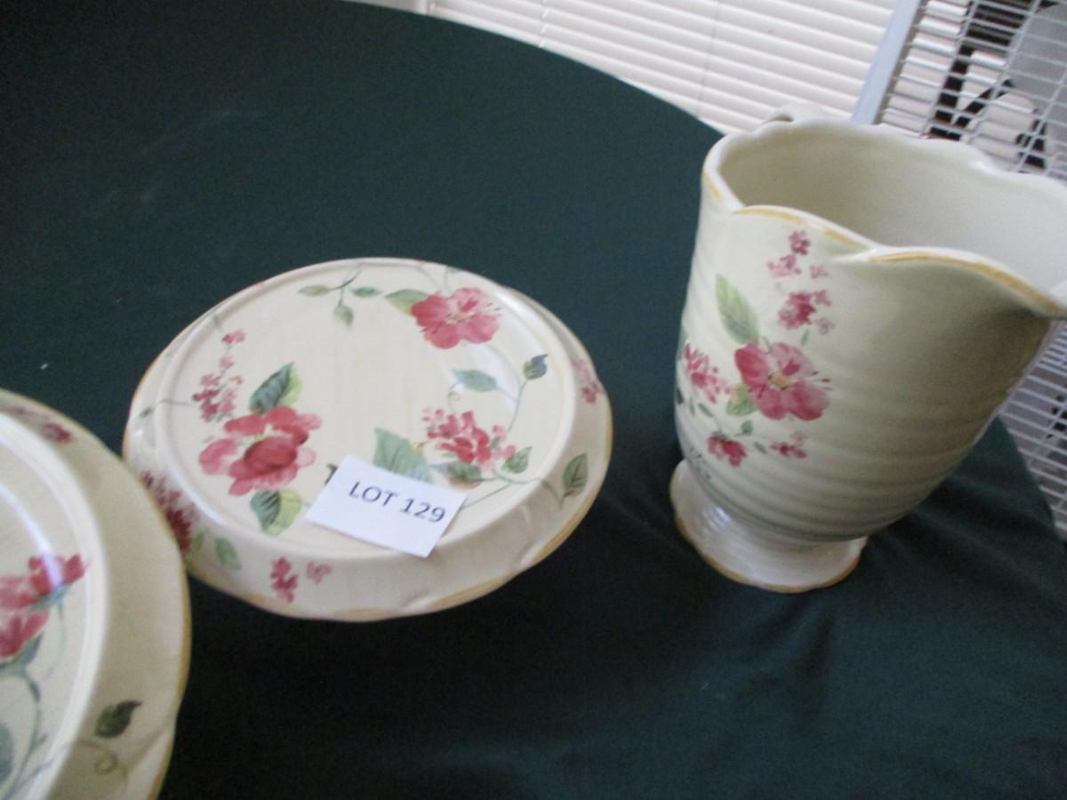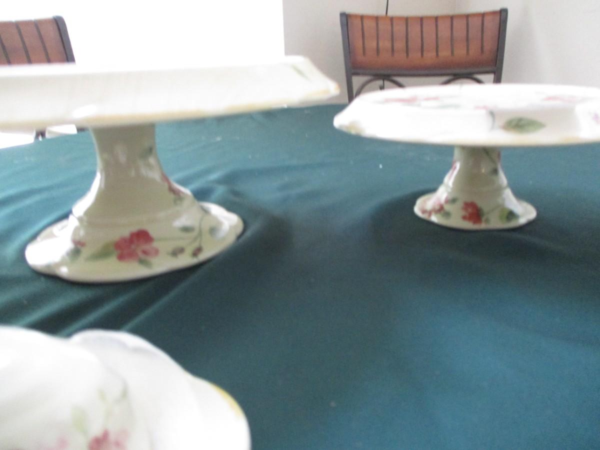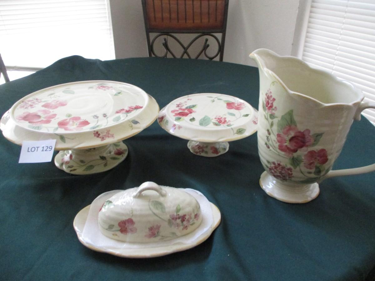 butter dish, Cake/Pie platters, pitcher. Excellent condtion