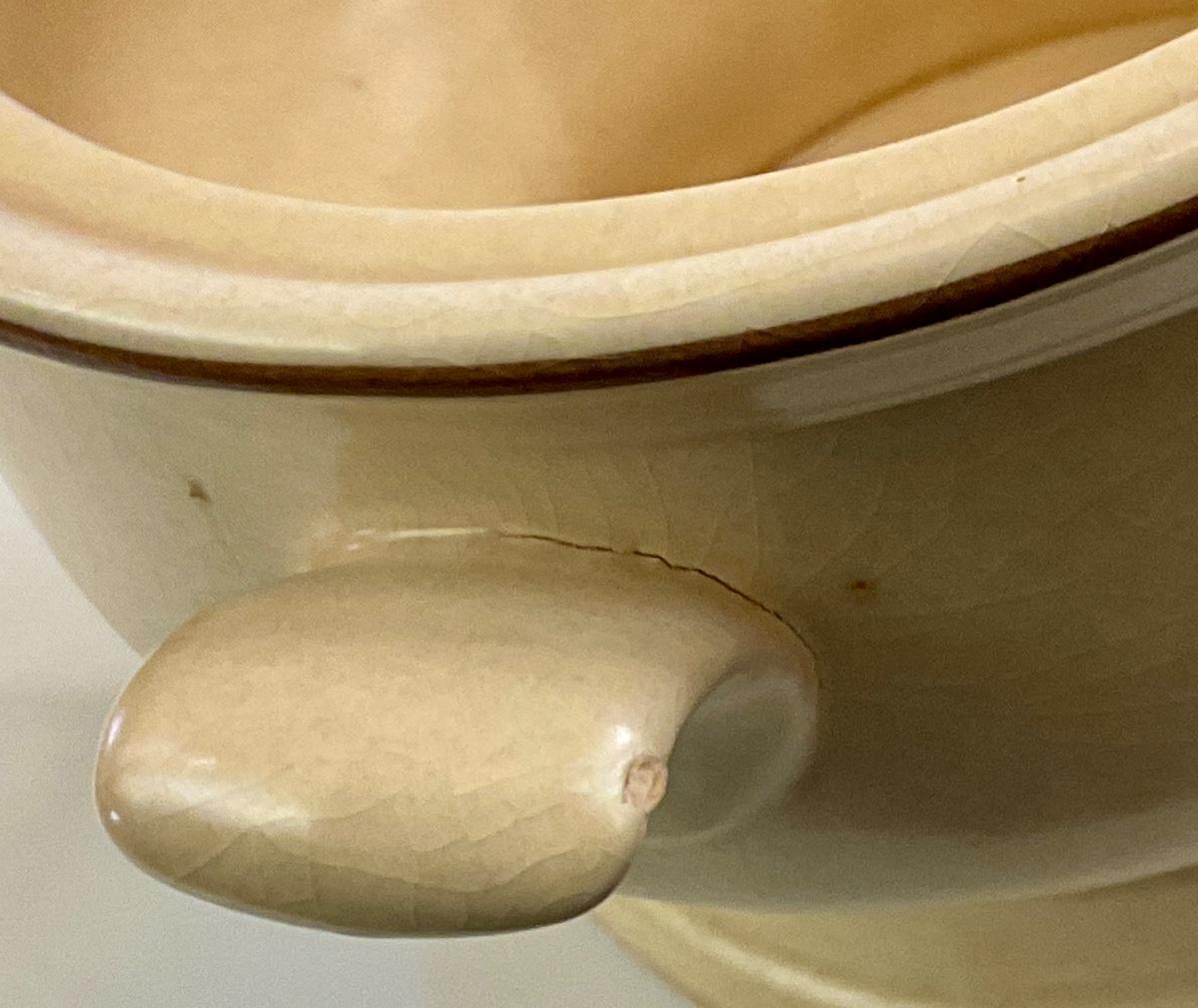 Has factory defect on connection of 1 handle, and an imperfection on the edge