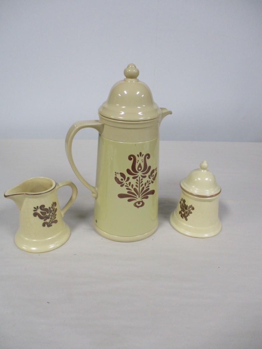 Pfaltzgraff Village Tall Coffee Pot With Lid Creamer & Sugar