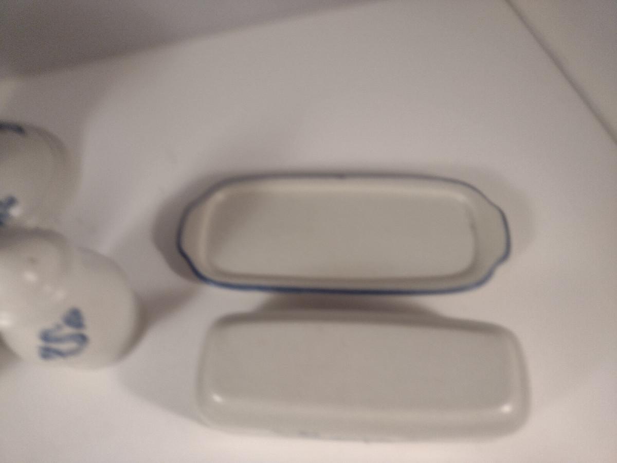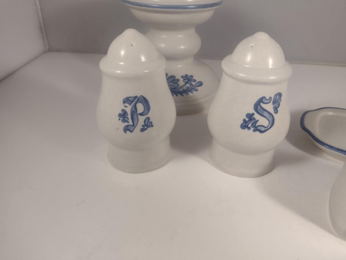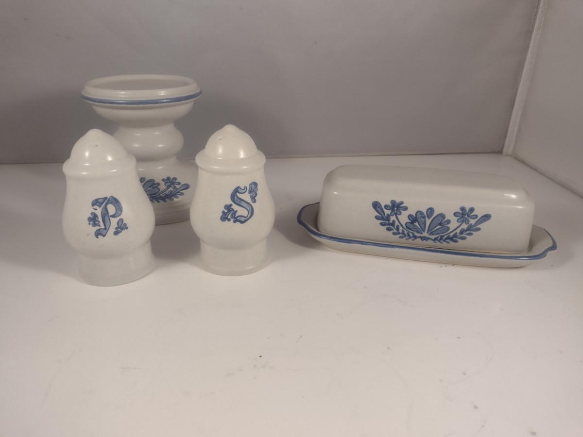 Pfaltzgraff Yorktowne Pottery Table Ware- Salt and Pepper Shakers, Covered Butter Dish, Pedestal Candle Holder
