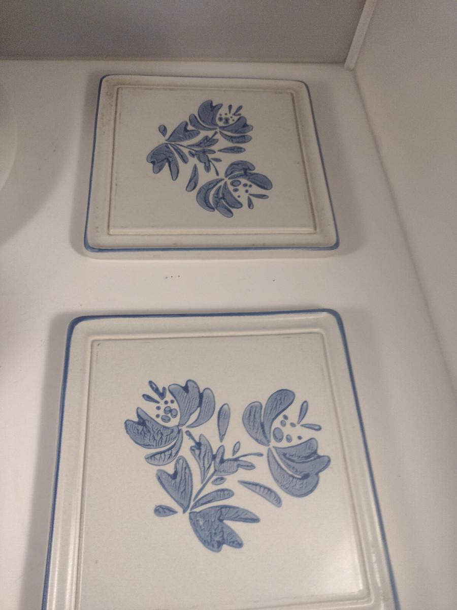 Pfaltzgraff Yorktowne Pottery Table Ware- Trivets, Condiment Caddy, Two Tier Tidbit Tray