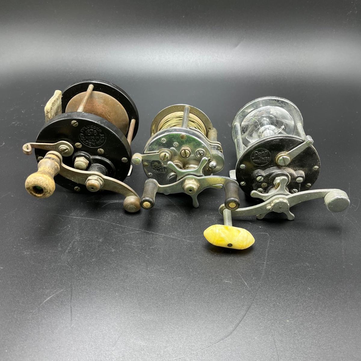 Lot includes a Pfeugler Rocket # 1355 reel, Pfeugler Golden West # 1878 Penn Peer # 209 and a Penn # 155. Largest diameter reel measures 3.25”D.