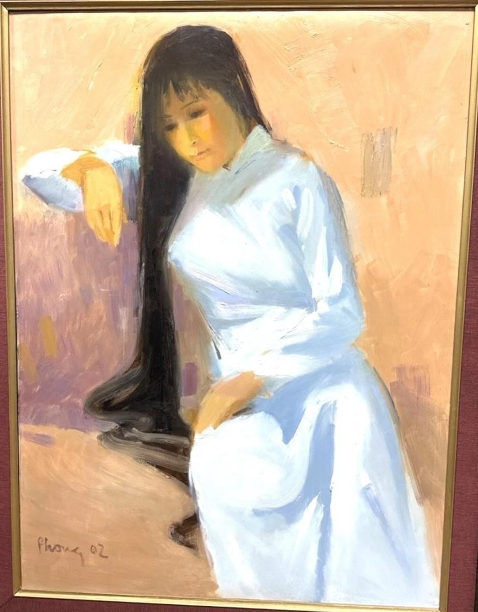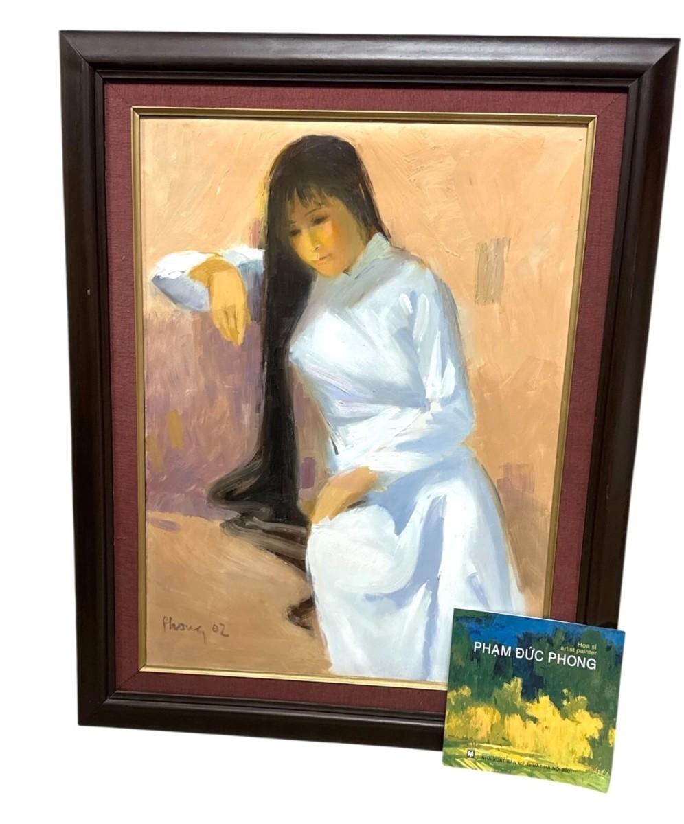 Pham Duc Phong Signed Vietnamese Original Oil Painting Woman Portrait Dated '02. Comes with signed book with note.