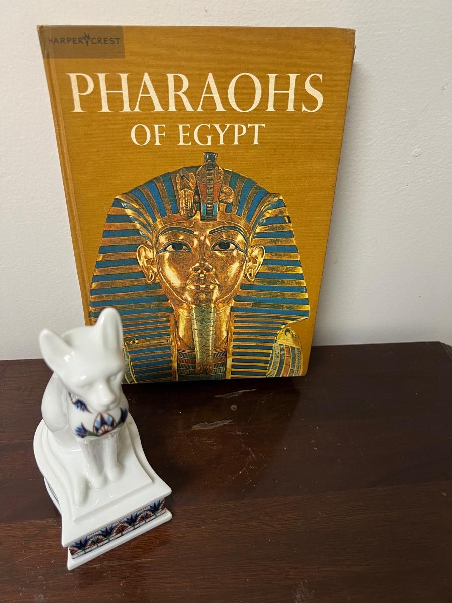 pharaohs of Egypt lot, includes pharaohs of Egypt book, treasures of the pharaohs by Elizabeth arden trinket dish, as pictured