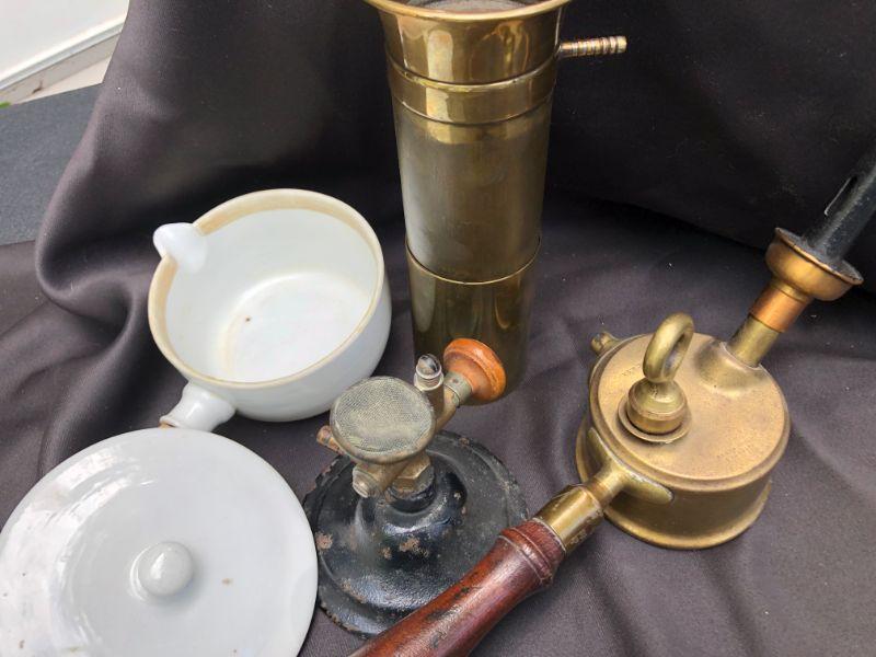 Lot of Mixed Pharmaceutical Copper, Cast Iron and Porcelain Instruments/ Equipment.