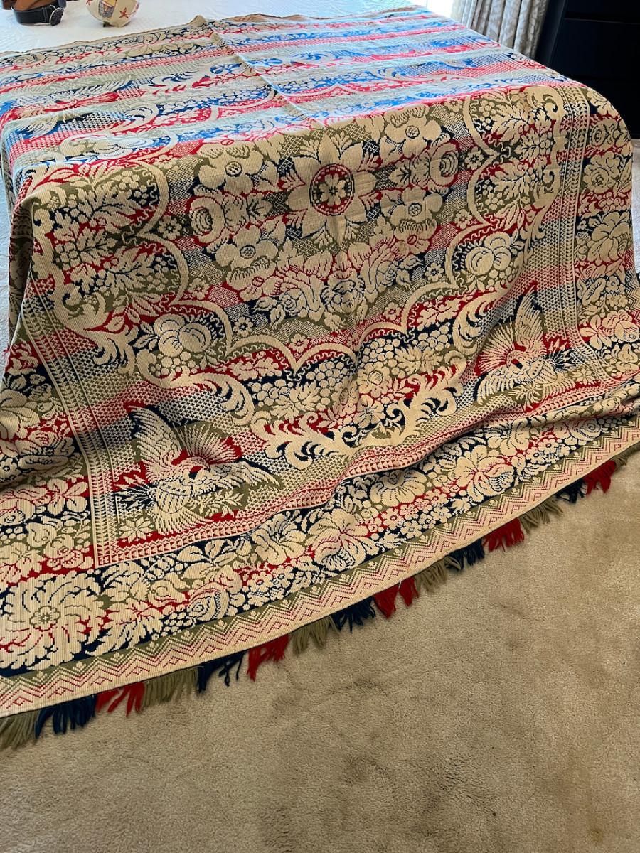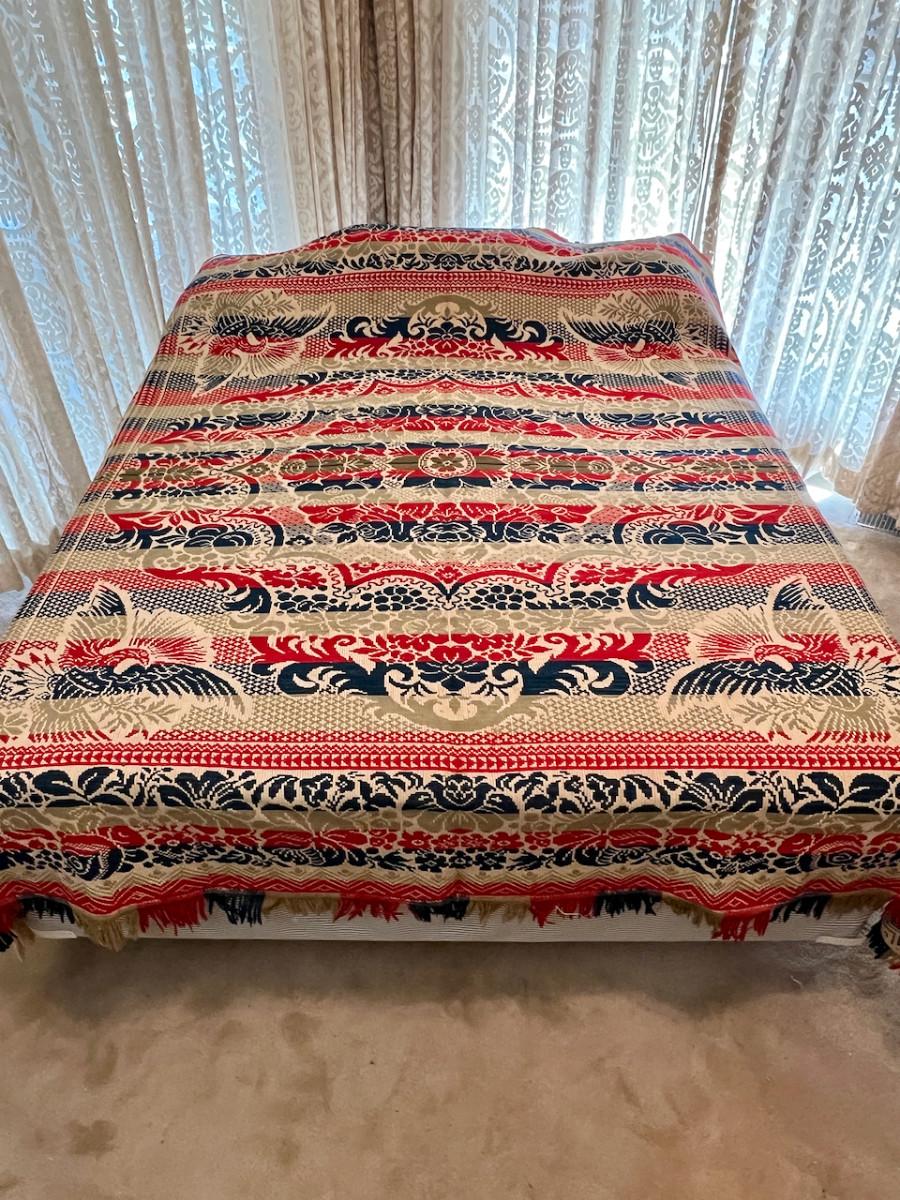 Phenominal Antique 19th C Double Jacquard Coverlet w Eagles