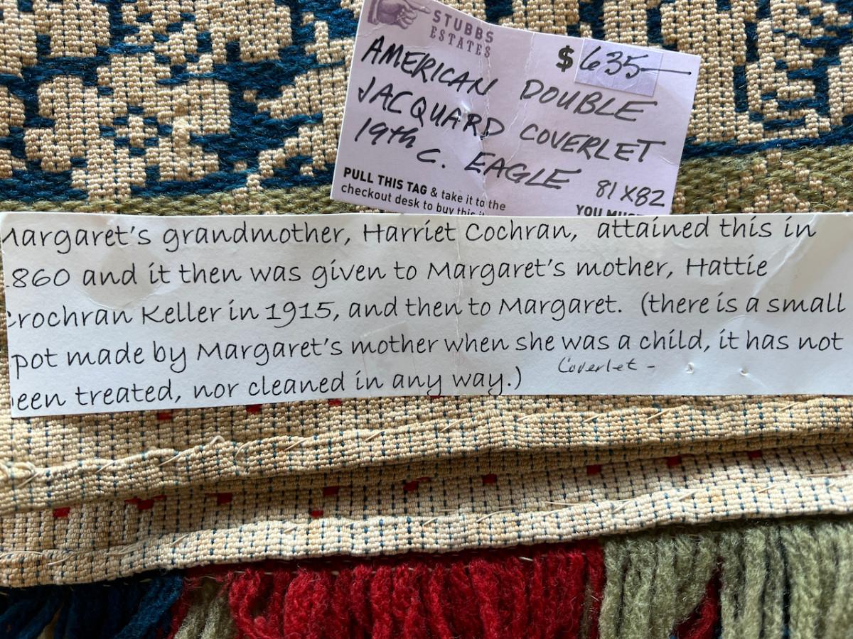 Absolutely Phenominal Antique 19th C Double Jacquard Coverlet w Eagles and provenance