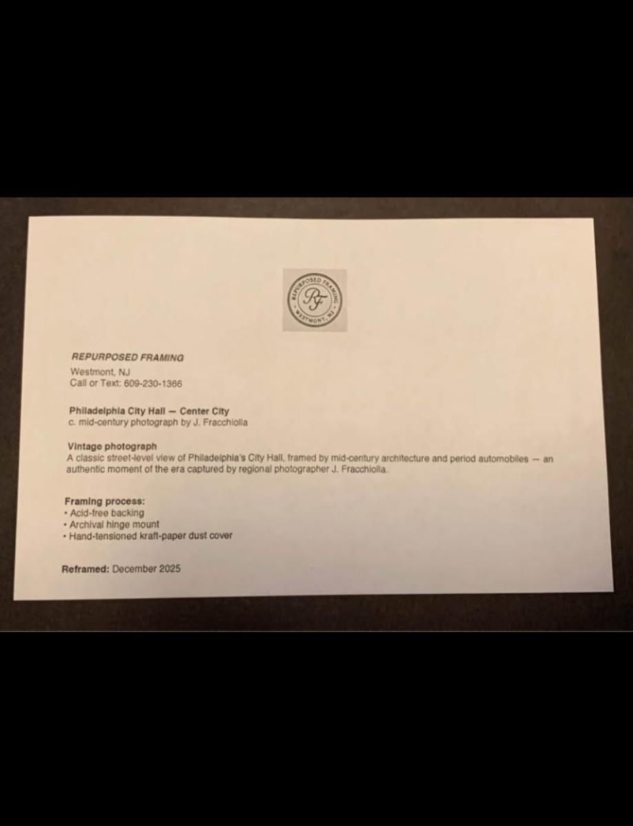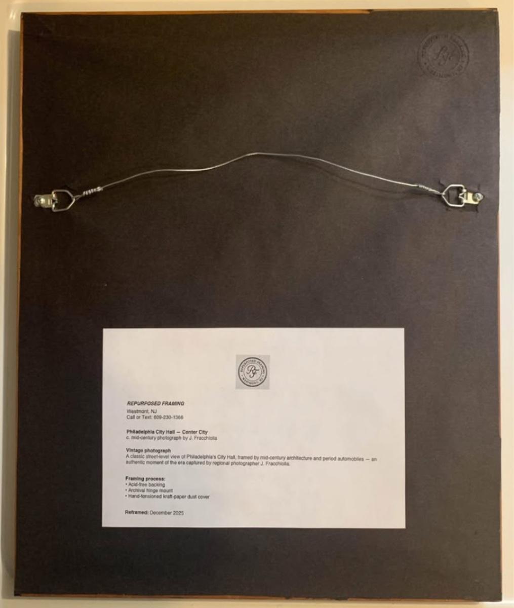 Professionally framed by Repurposed Framing – Westmont, NJ using a solid wood frame, clean neutral matting, new hardware, dust cover, and hanging wire. Ready to hang.