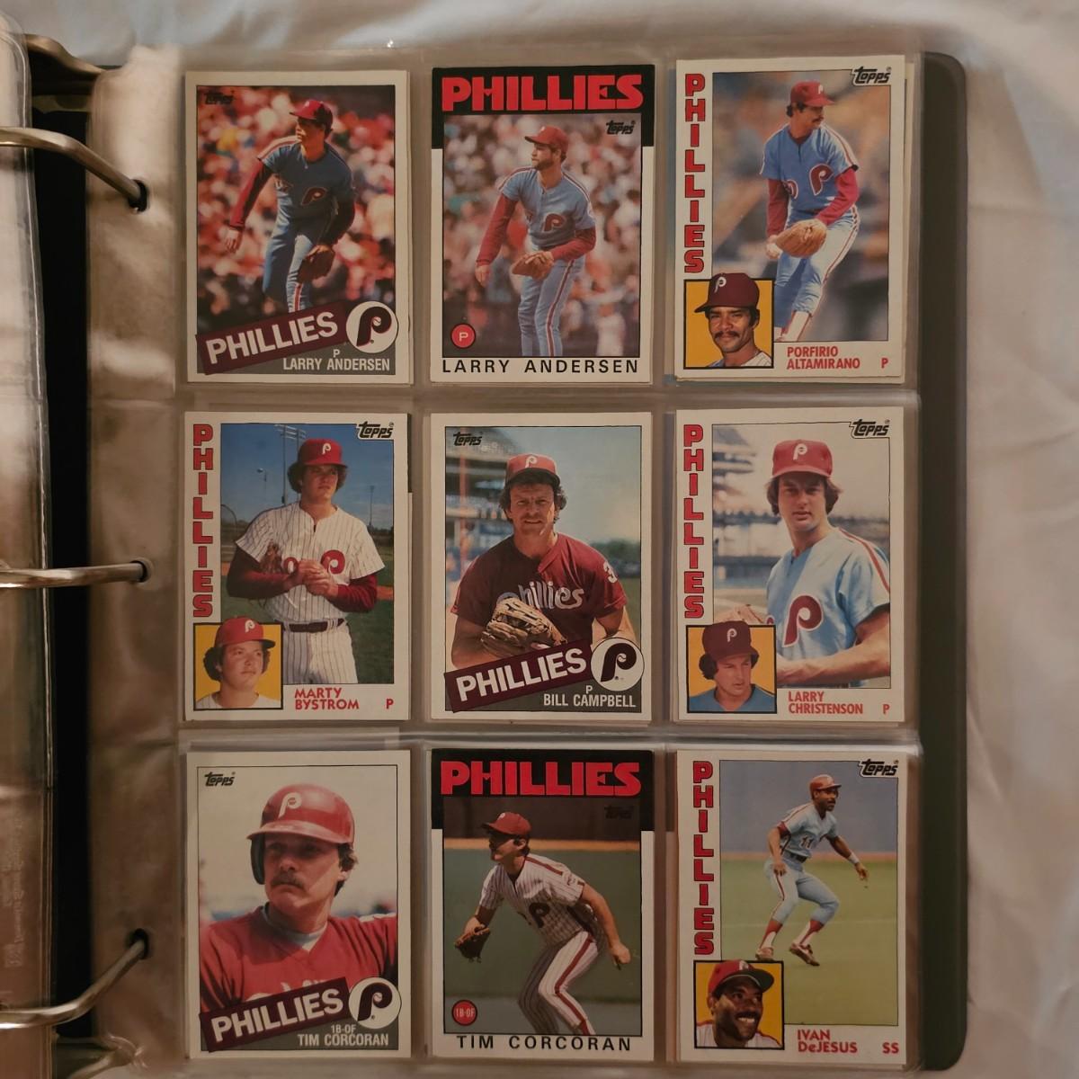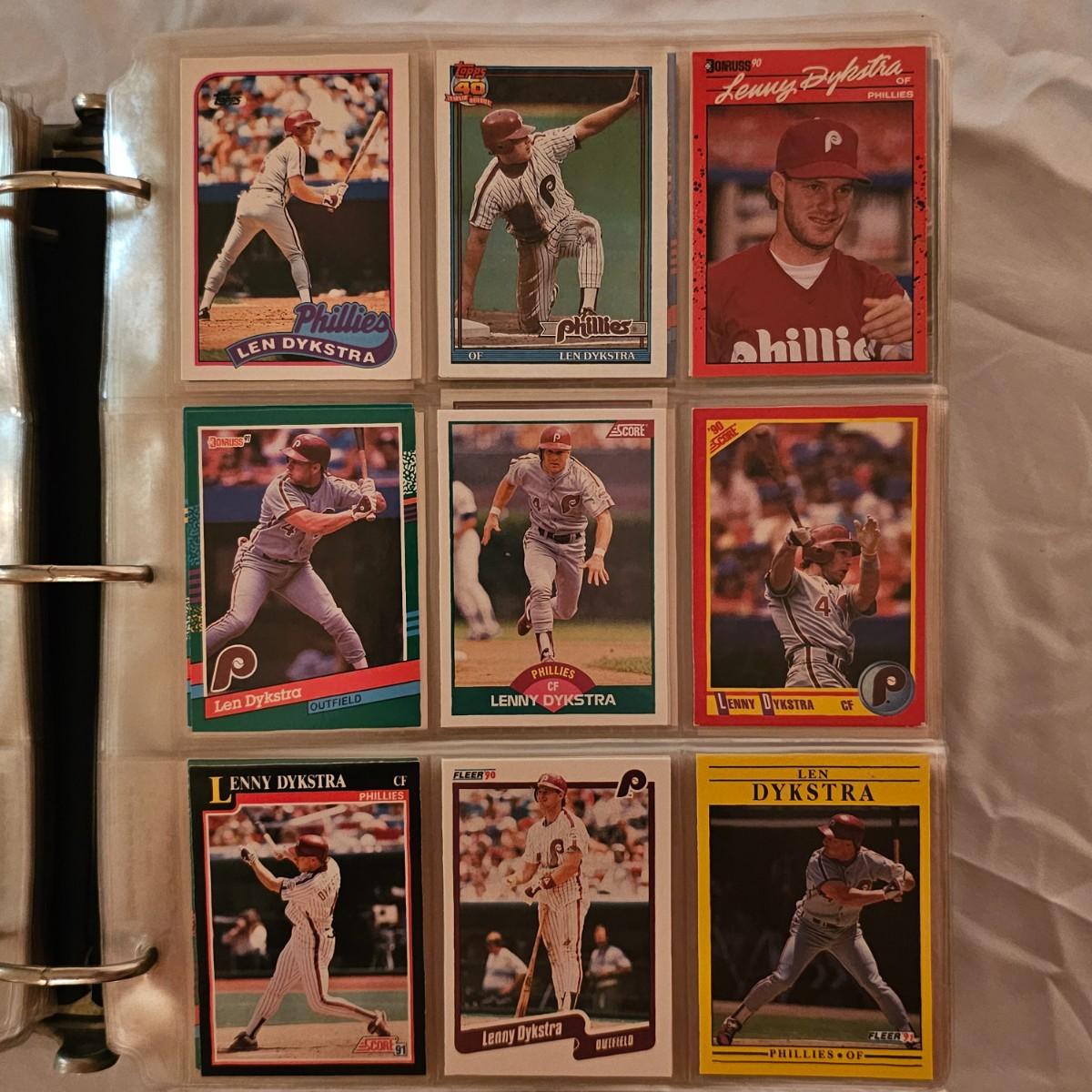 A collection of the Philadelphia Phillies players baseball cards from the mid 1980's into the early 1990's. All players are placed in alpha order by last name in standard nine pocket sleeves. Companies represented here are Topps, Fleer, Score and others. Cannot guarantee if sets are complete or not, and cards are not graded or appraised. See photos for details. Shipping available. All sales are final. No returns or refunds. Please bid accordingly.